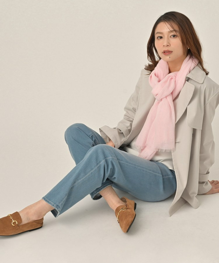 端は繊細なフリンジがアクセントになり、装いに軽やかさを添えます。