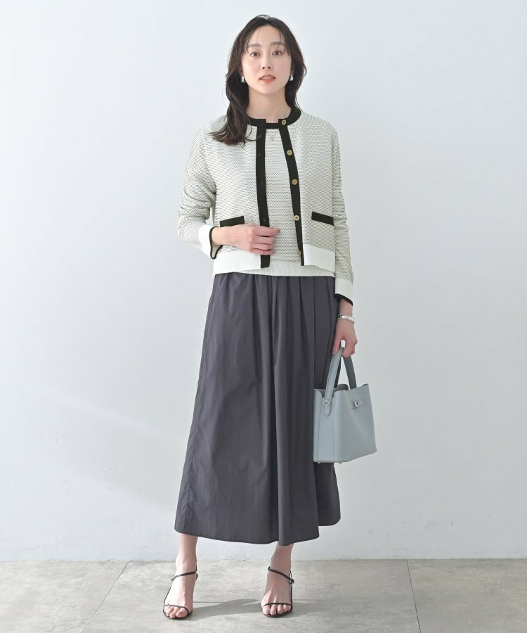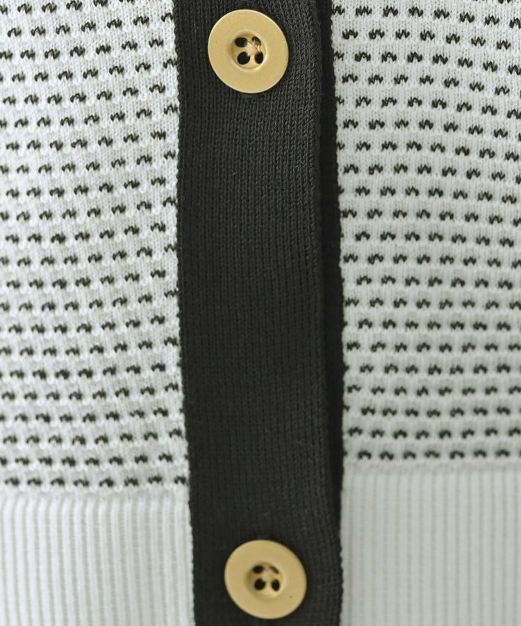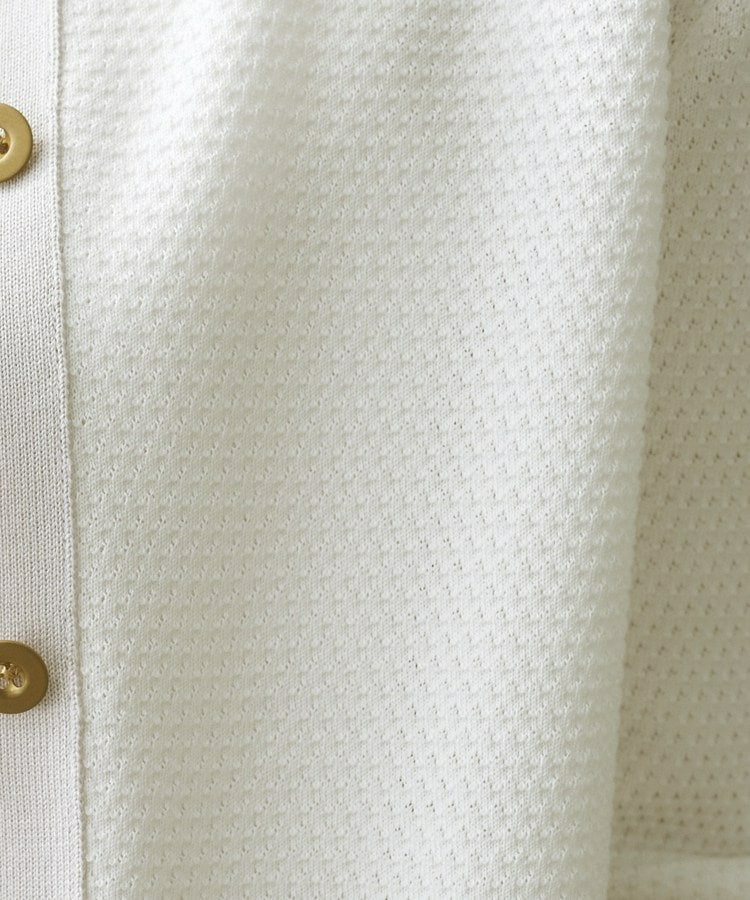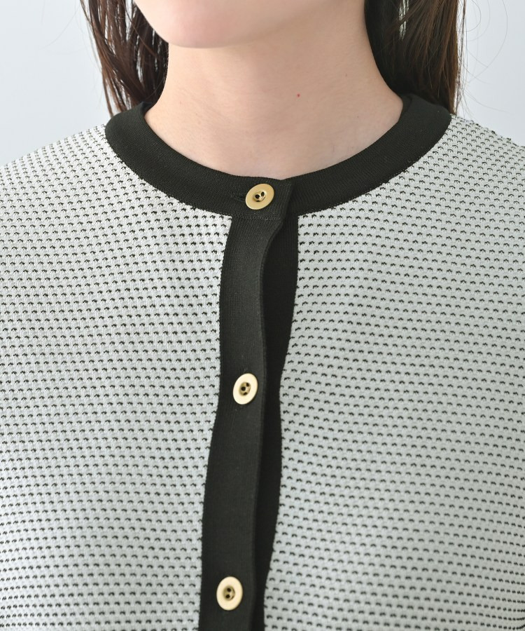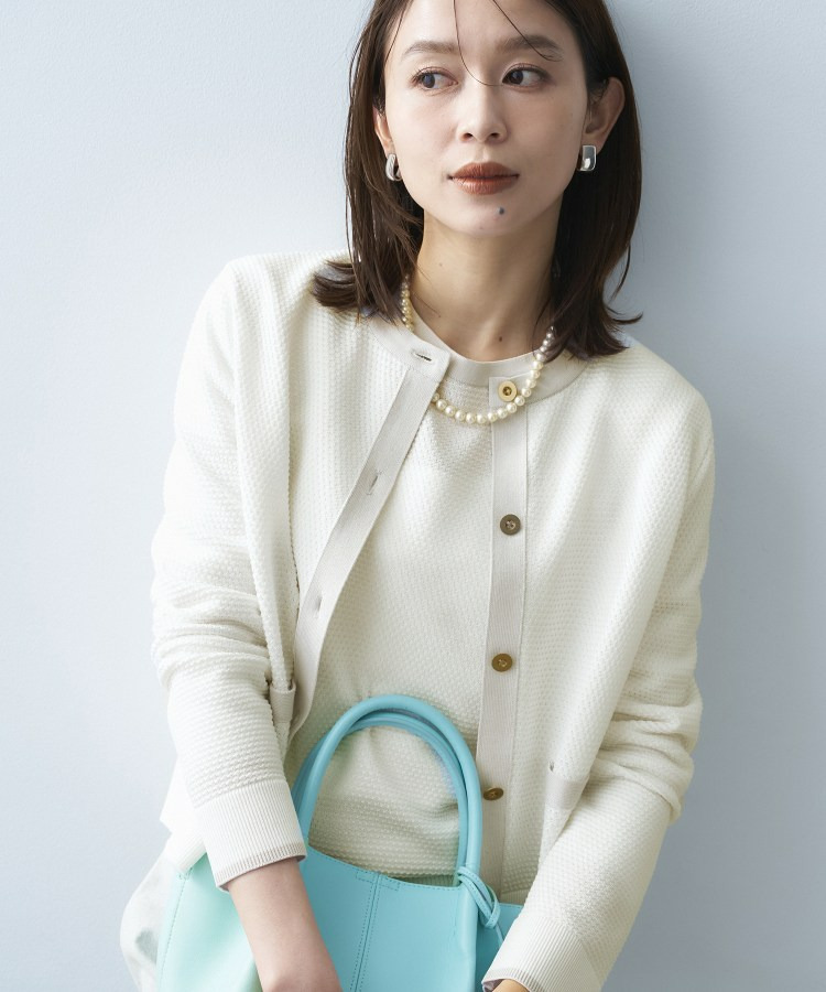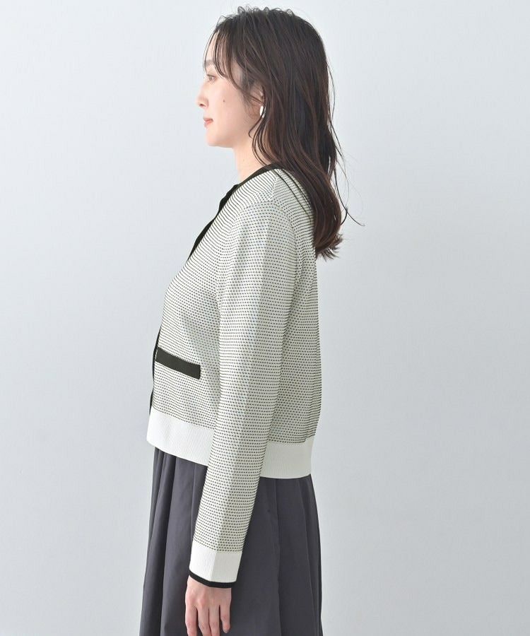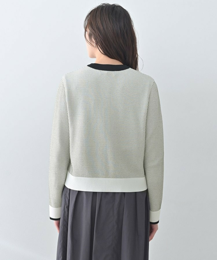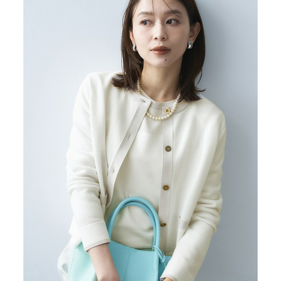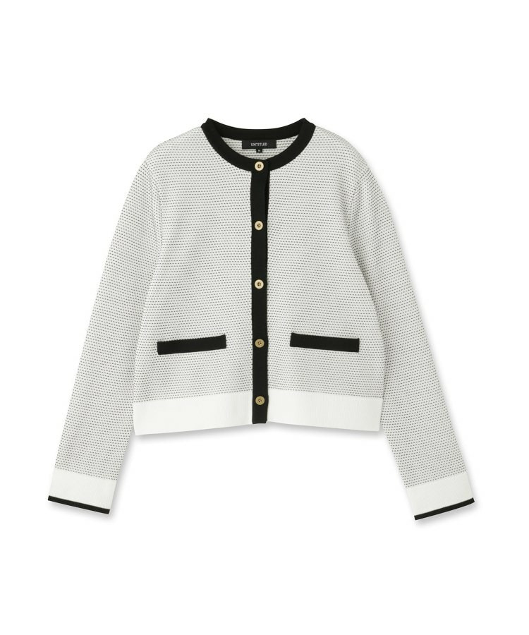 凹凸感のある地柄でツイード風の表情を表現したハイゲージニットカーディガン。