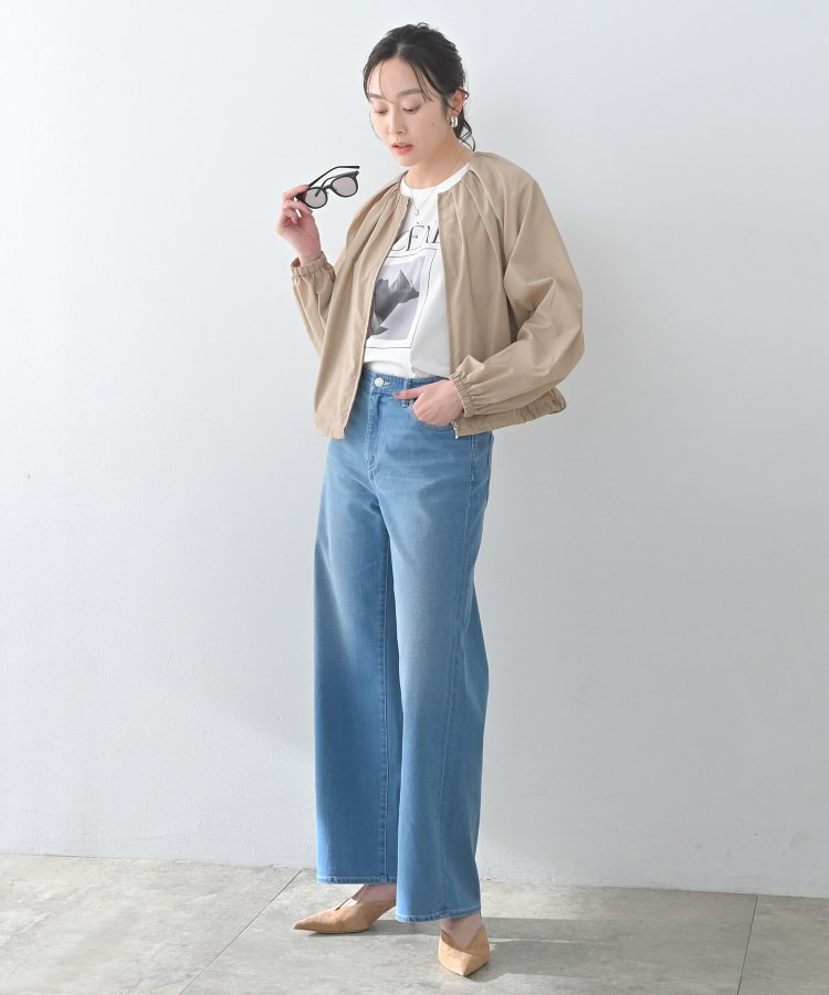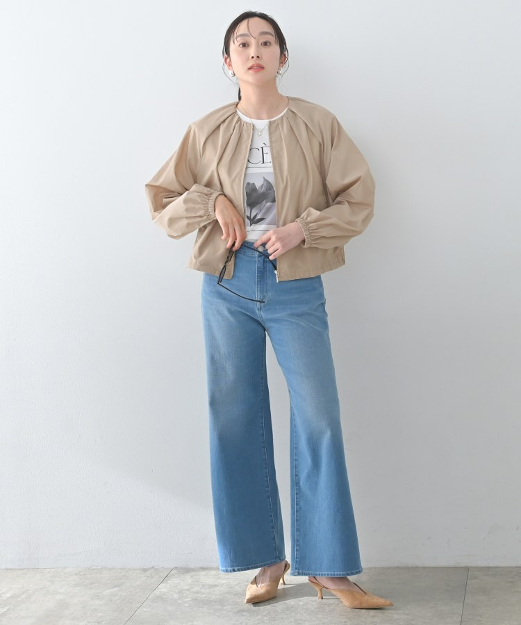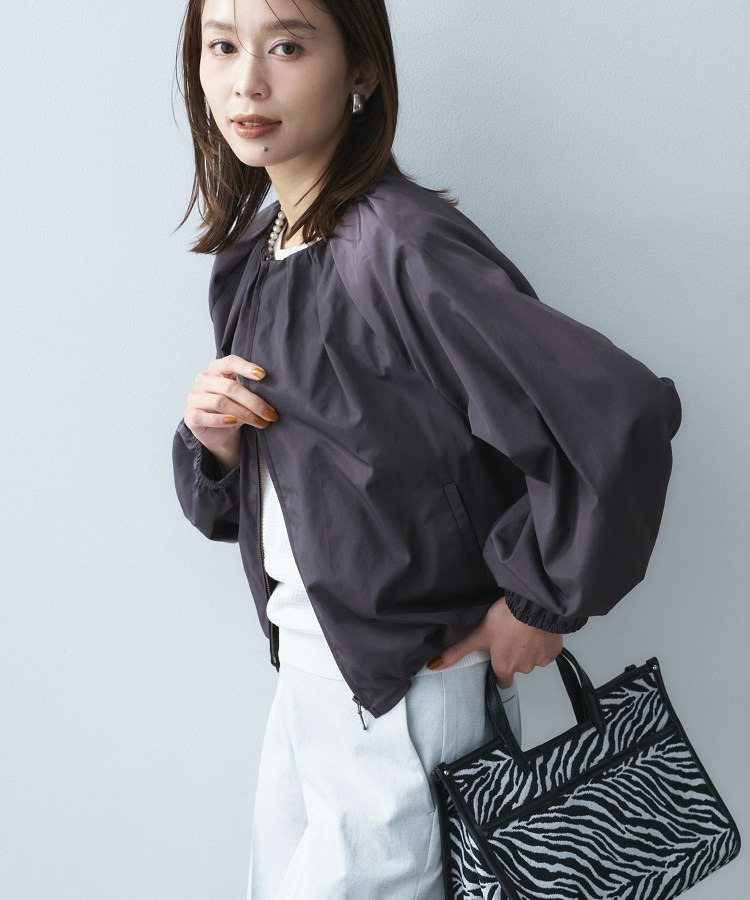 同素材のスカート(商品番号:153-75401)と合わせてセットアップとしても楽しめます。