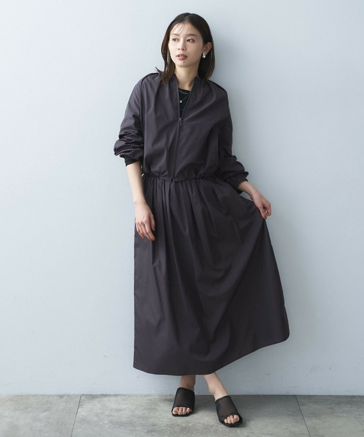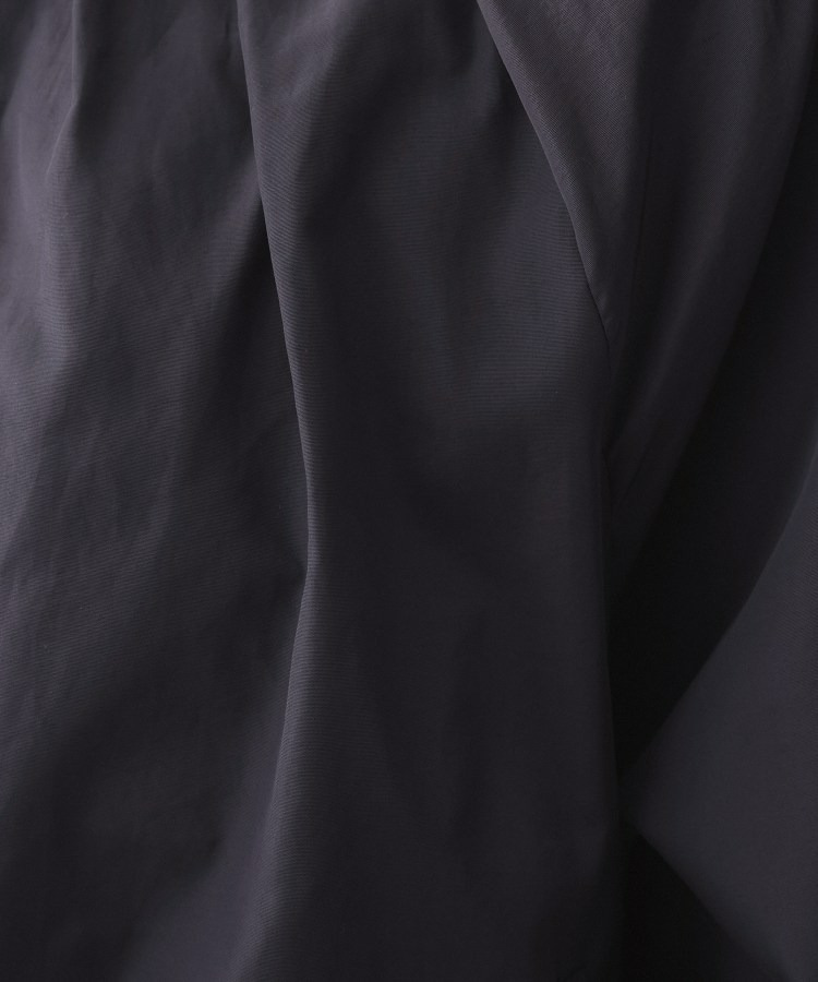 タック&ギャザーネックが個性的なアクセントとなり、シンプルながらも存在感を放つ一着です。