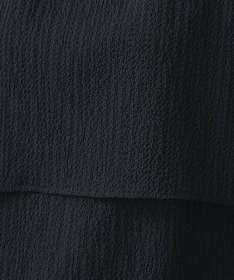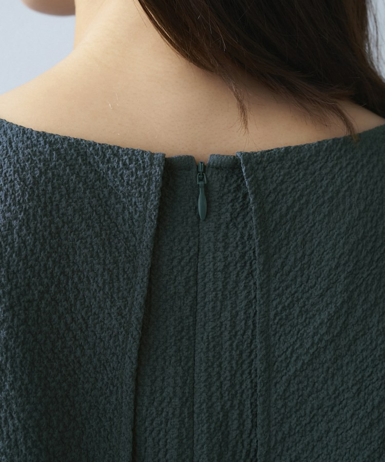 フロントはシンプルかつミニマルな印象ながら、背面にはタックのデザインから立体感が生まれ、動きを感じるディテールに。