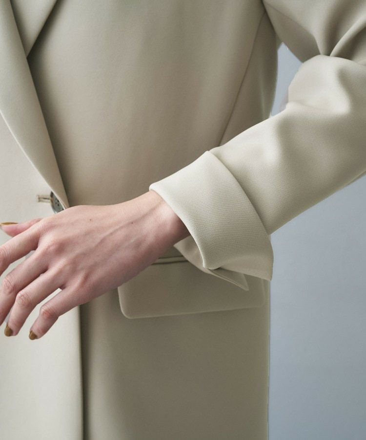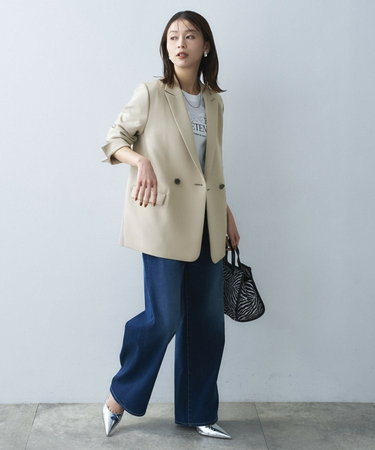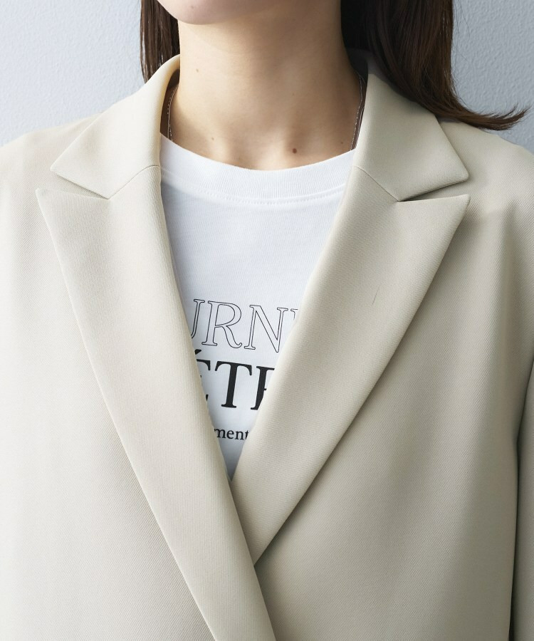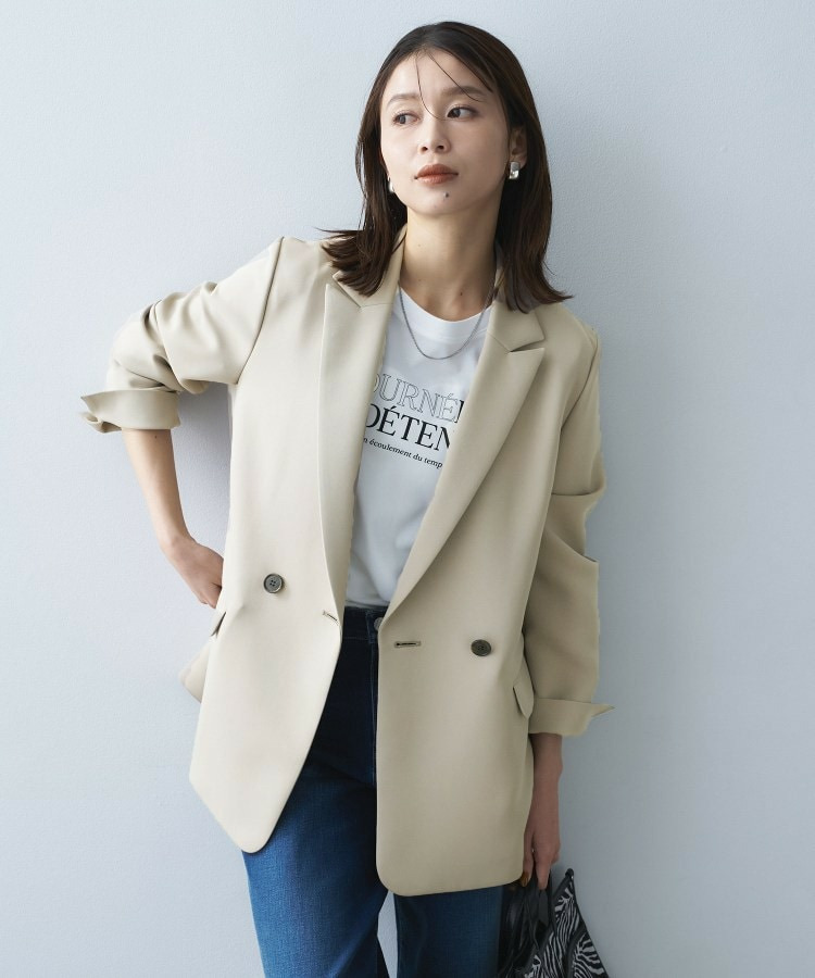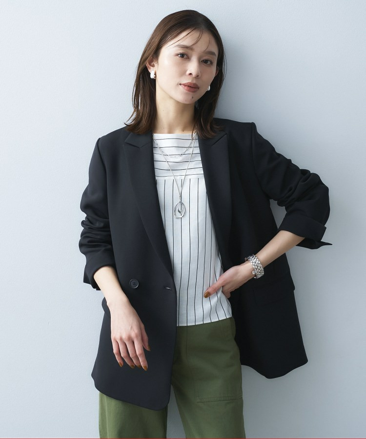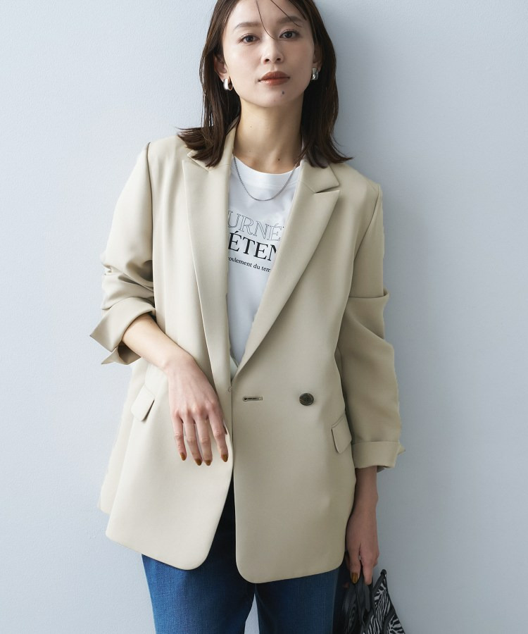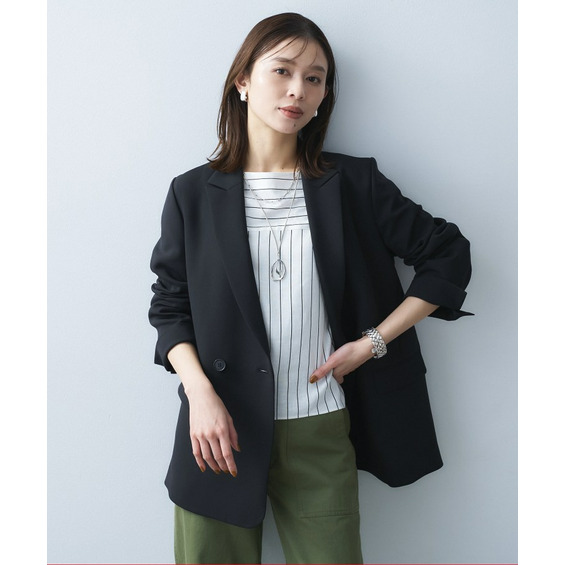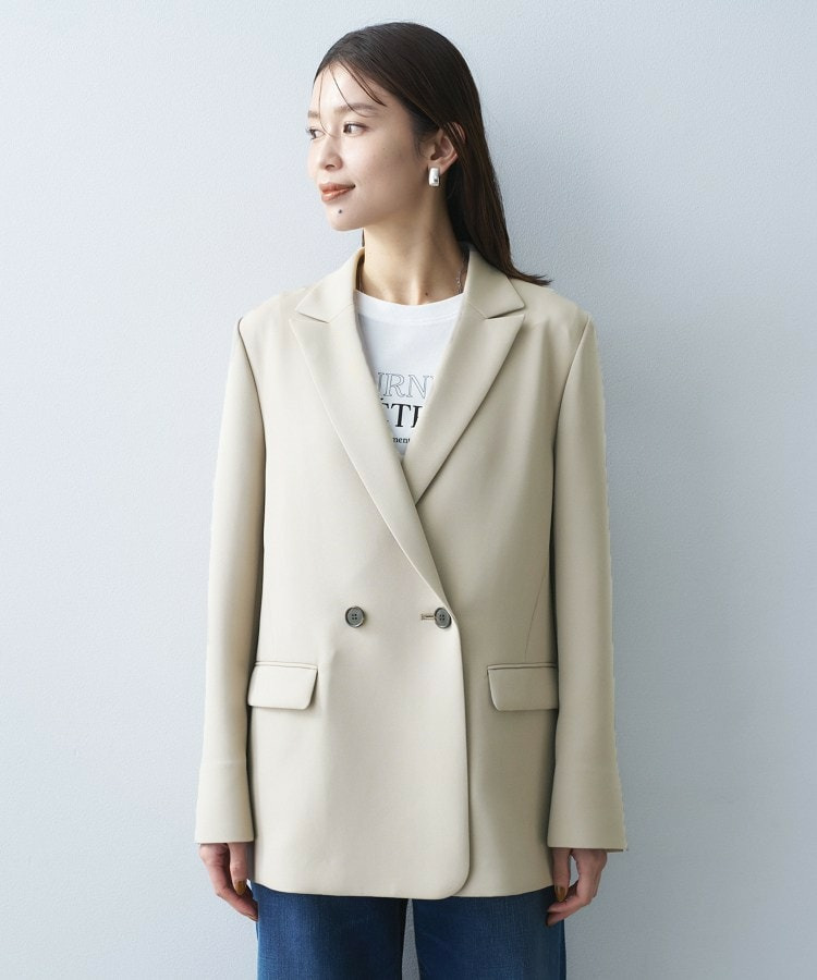 メンズライクなピークドラペルが印象的なダブルブレストジャケット。
