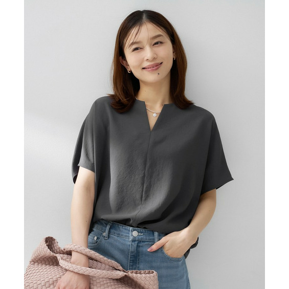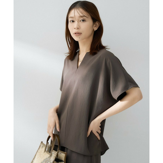 • 【はっ水/遮熱/セットアップ可】リラクミスト キーVネックブラウス1