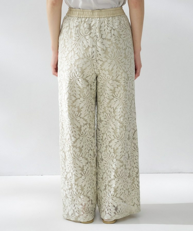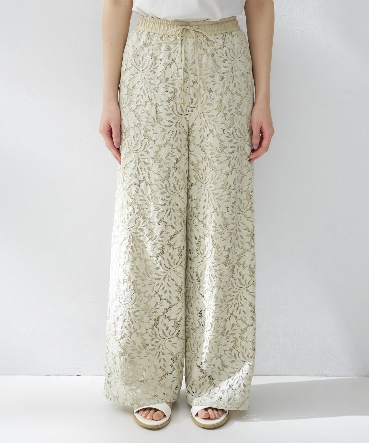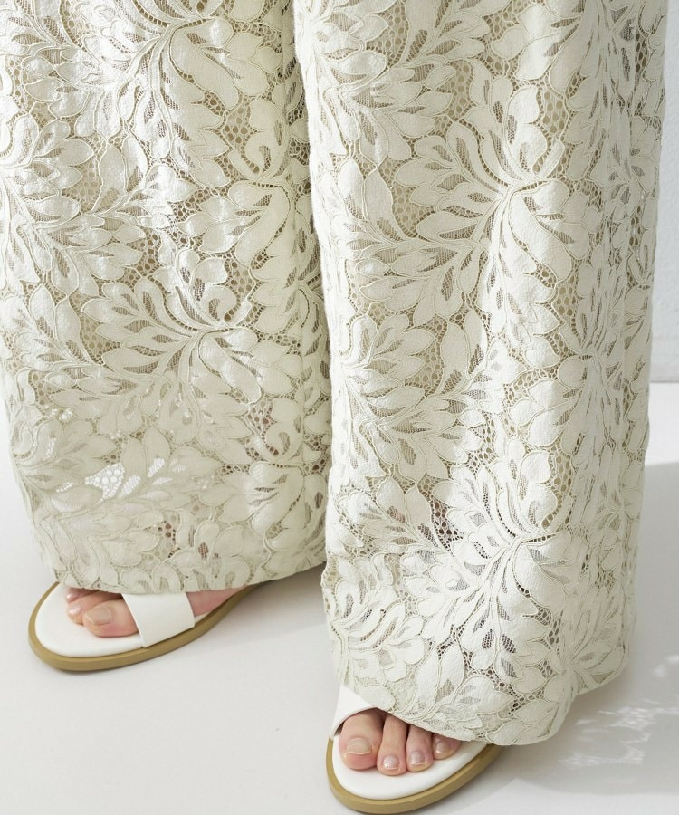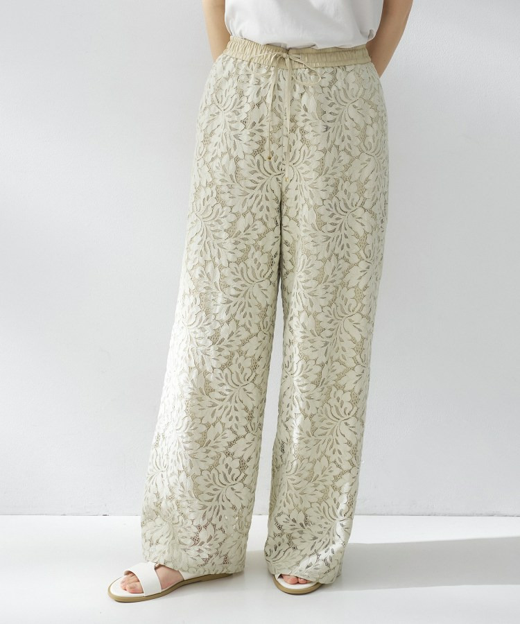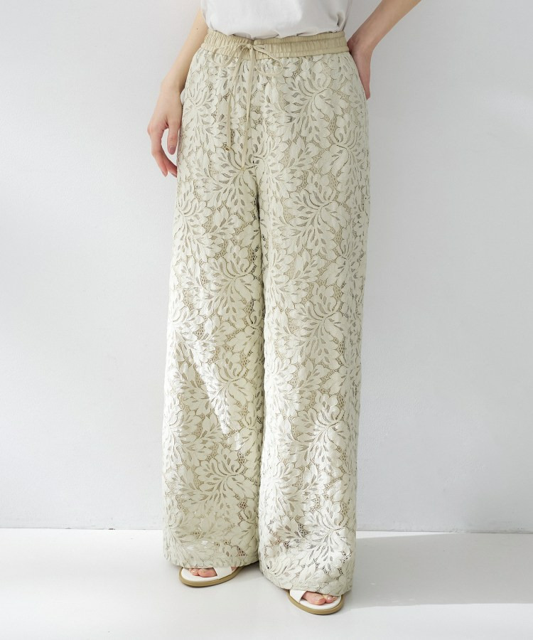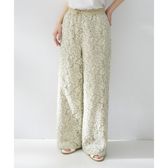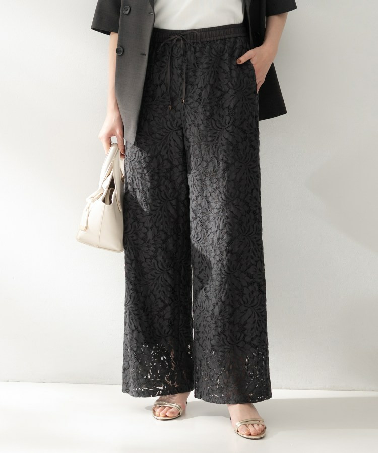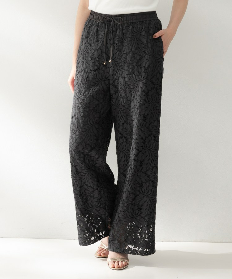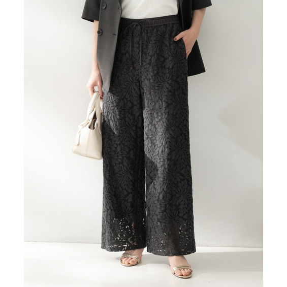 【ウエストゴム/華やか】フラワーレースワイドパンツ