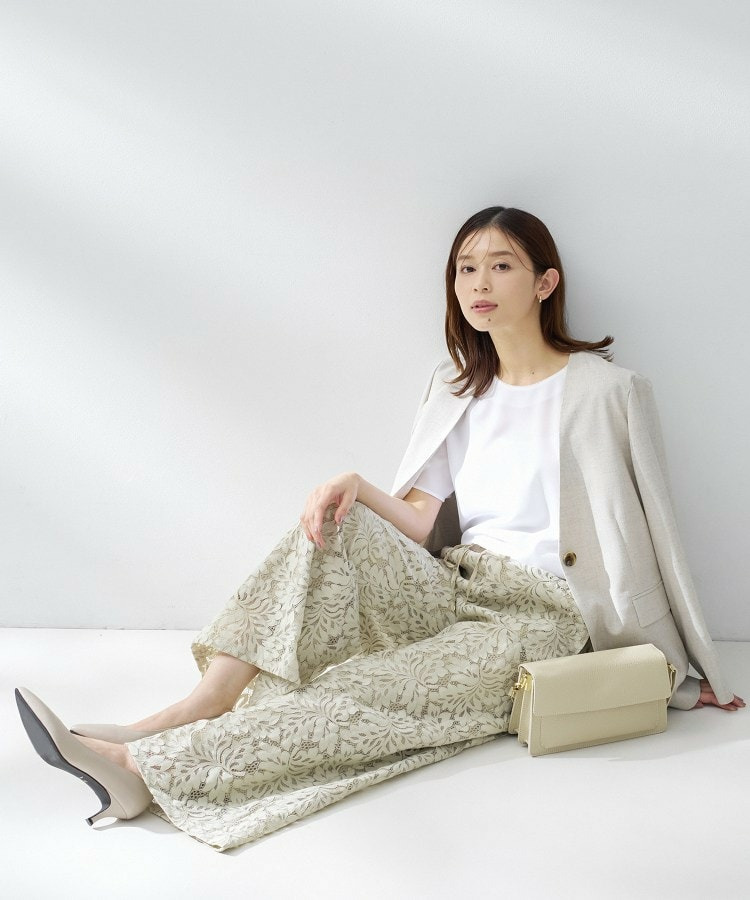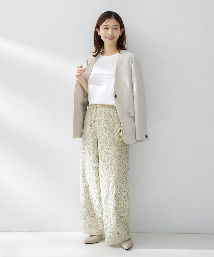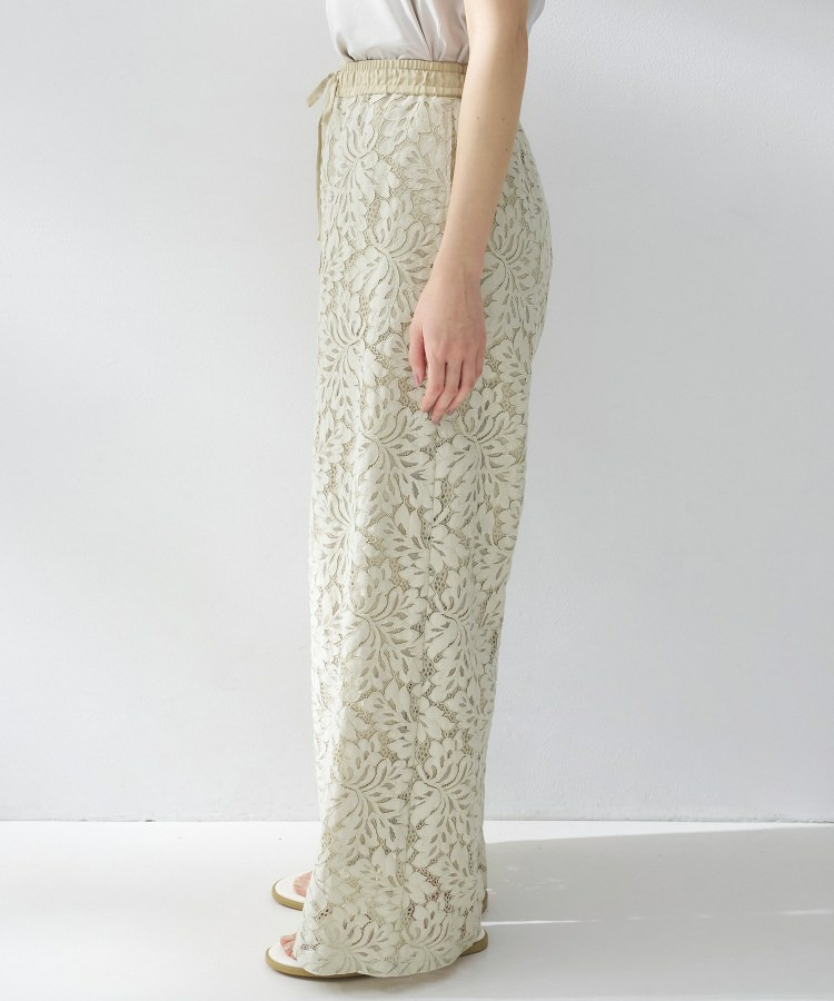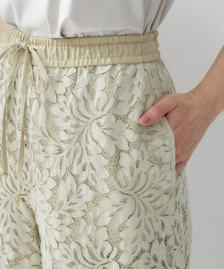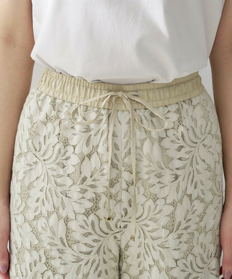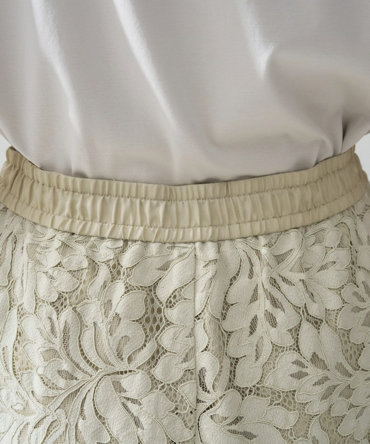 ウエスト部分はゴム仕様で、イージーな穿き心地を実現しつつ、華やかなコードレース素材を使用することで、カジュアルな中にも洗練された印象をプラスしました。