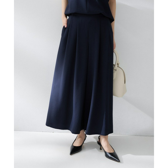 ワイドなシルエットが体型をカバーしつつ、動くたびに美しく揺れるラインが魅力です。