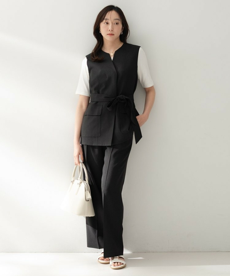セットアップのジャケット(商品番号:153-45506)とジレ(商品番号:153-45507)とのコーデがおすすめです。
