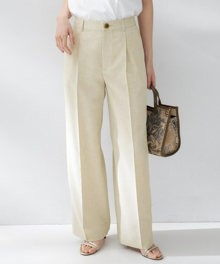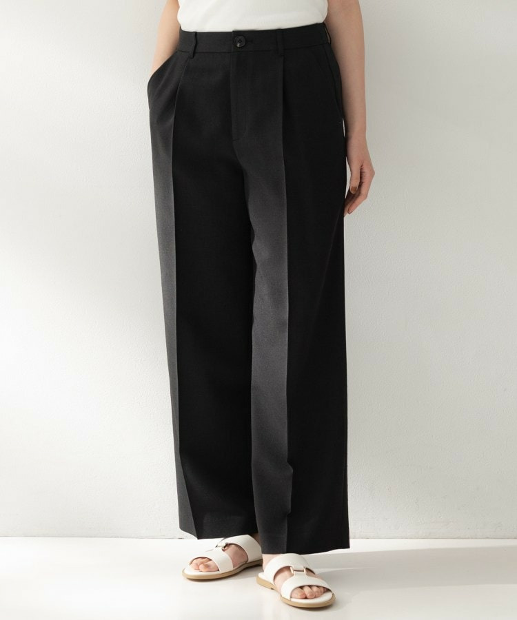 程よいリラックス感とシャープさを兼ね備えたタックワイドパンツ。