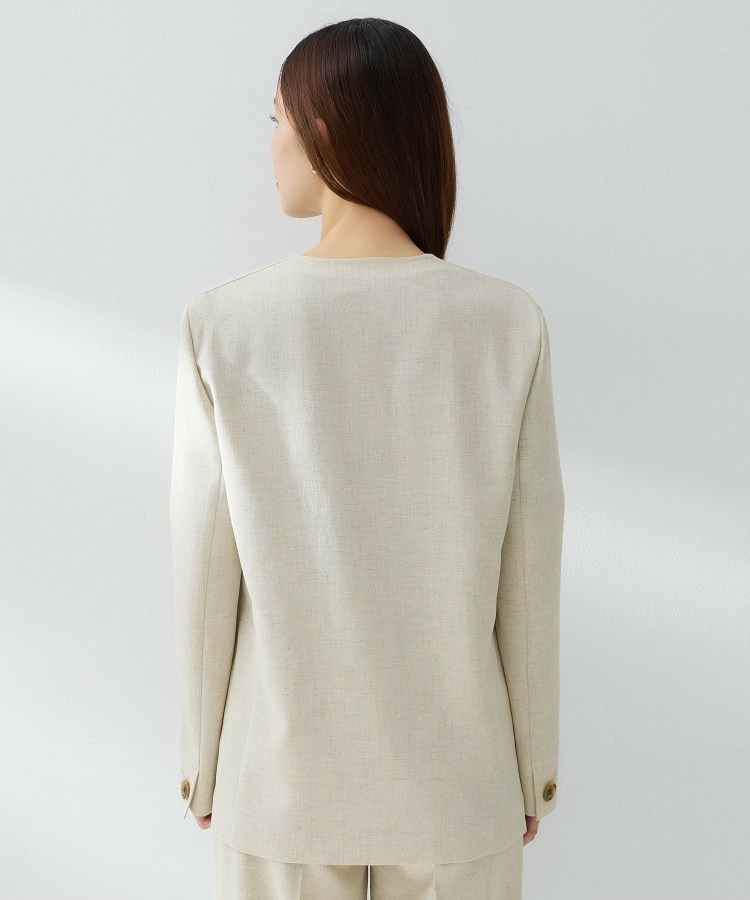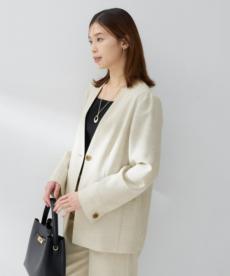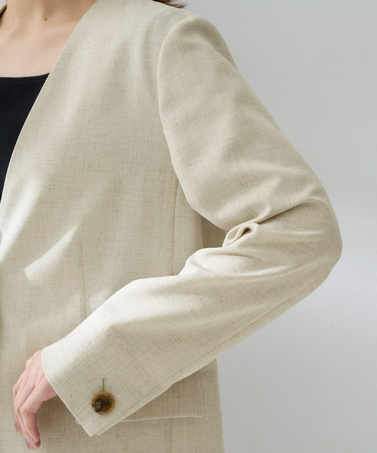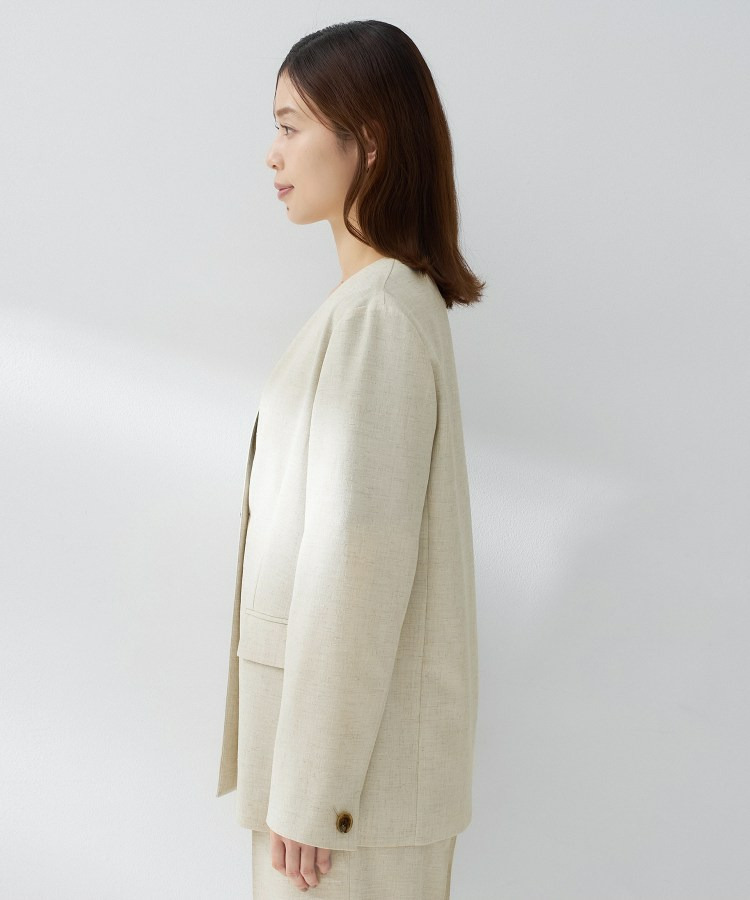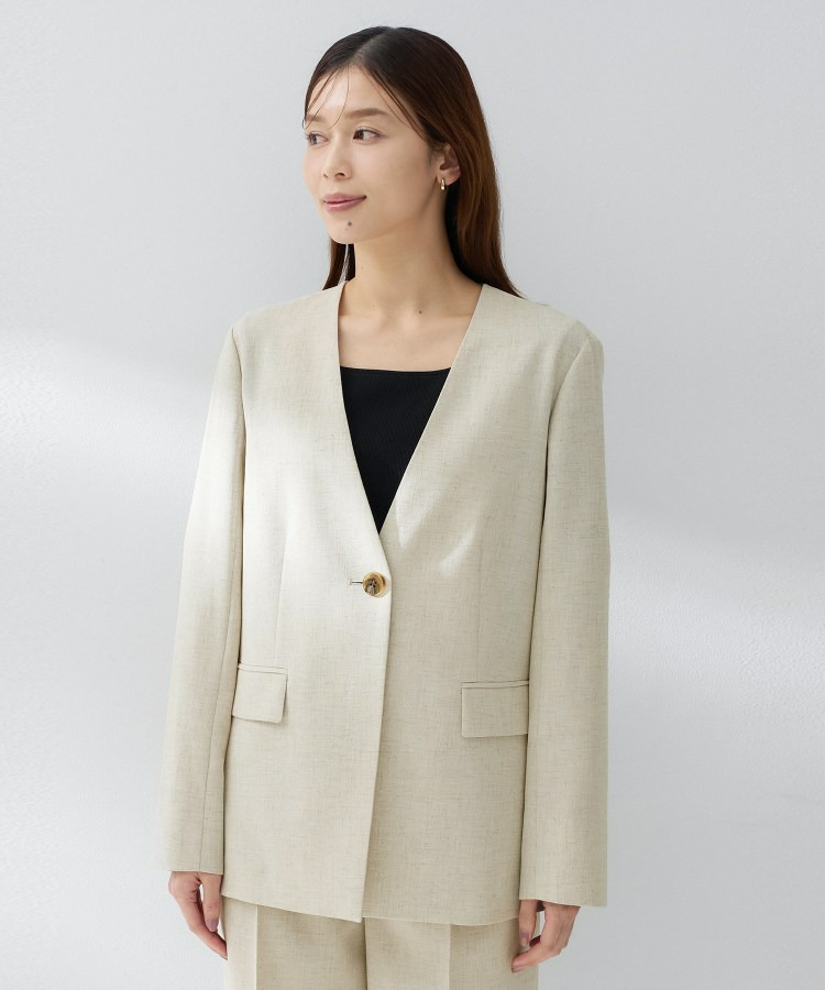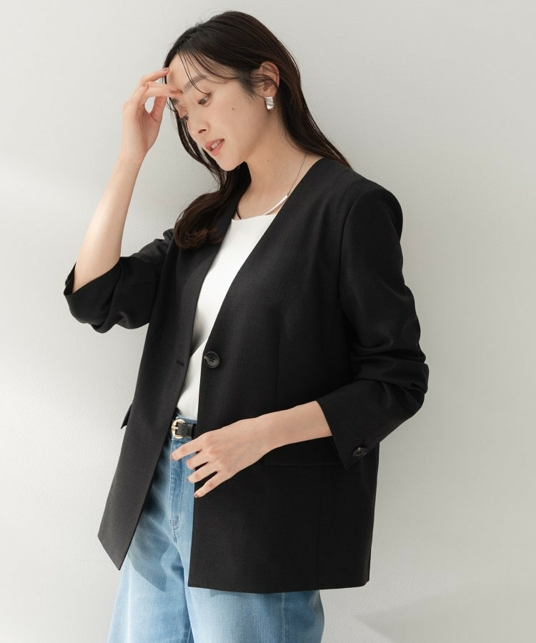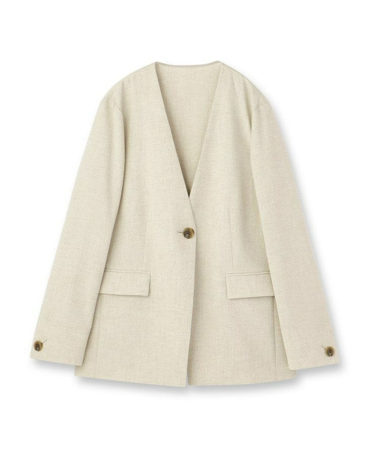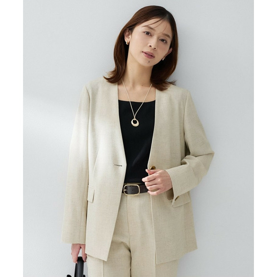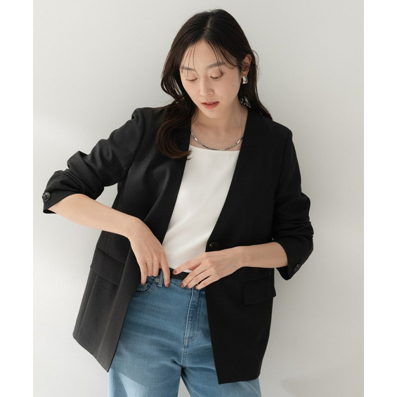シンプルながら洗練された印象を与えるカラーレスジャケット。