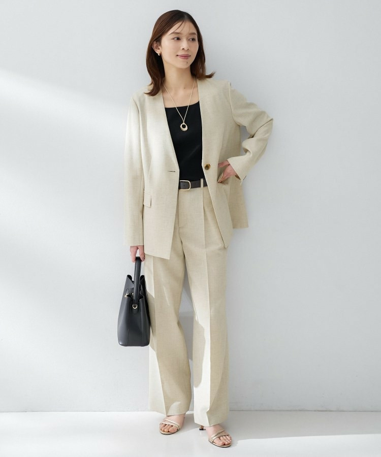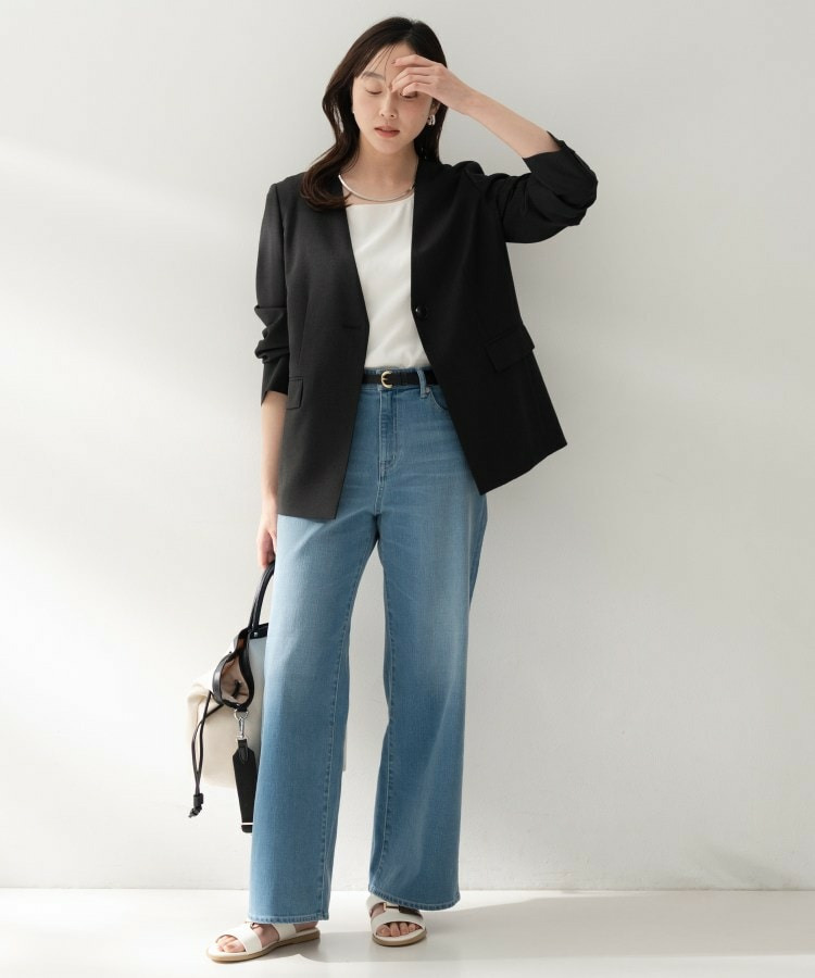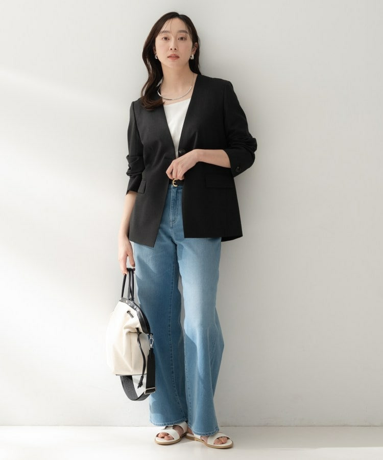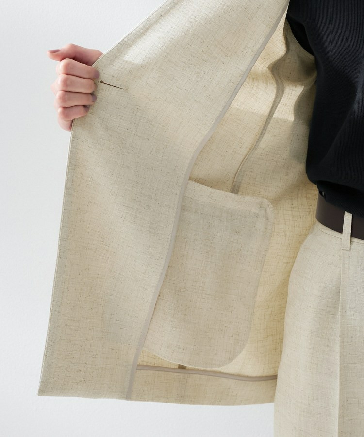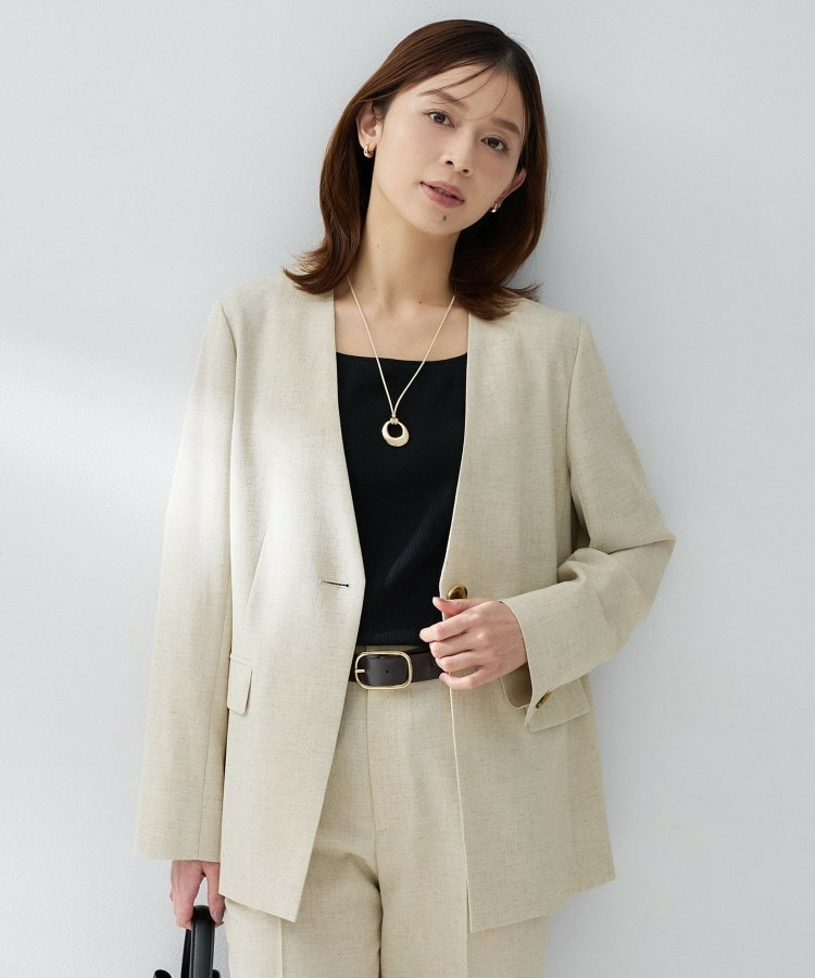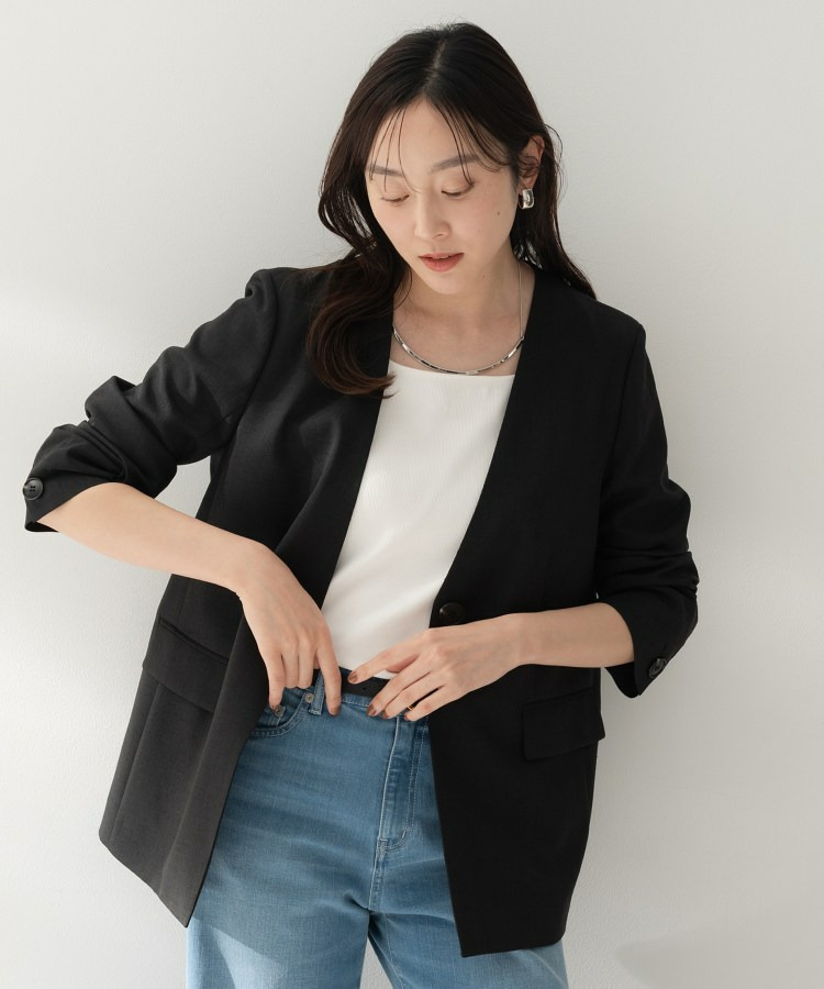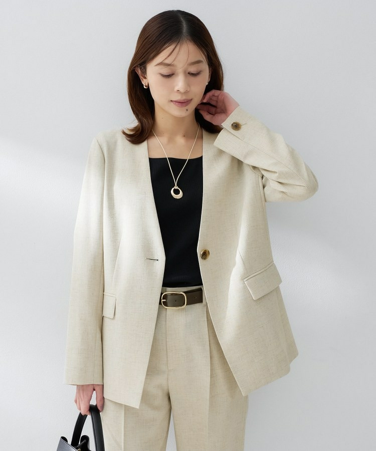 シンプルながら洗練された印象を与えるカラーレスジャケット。