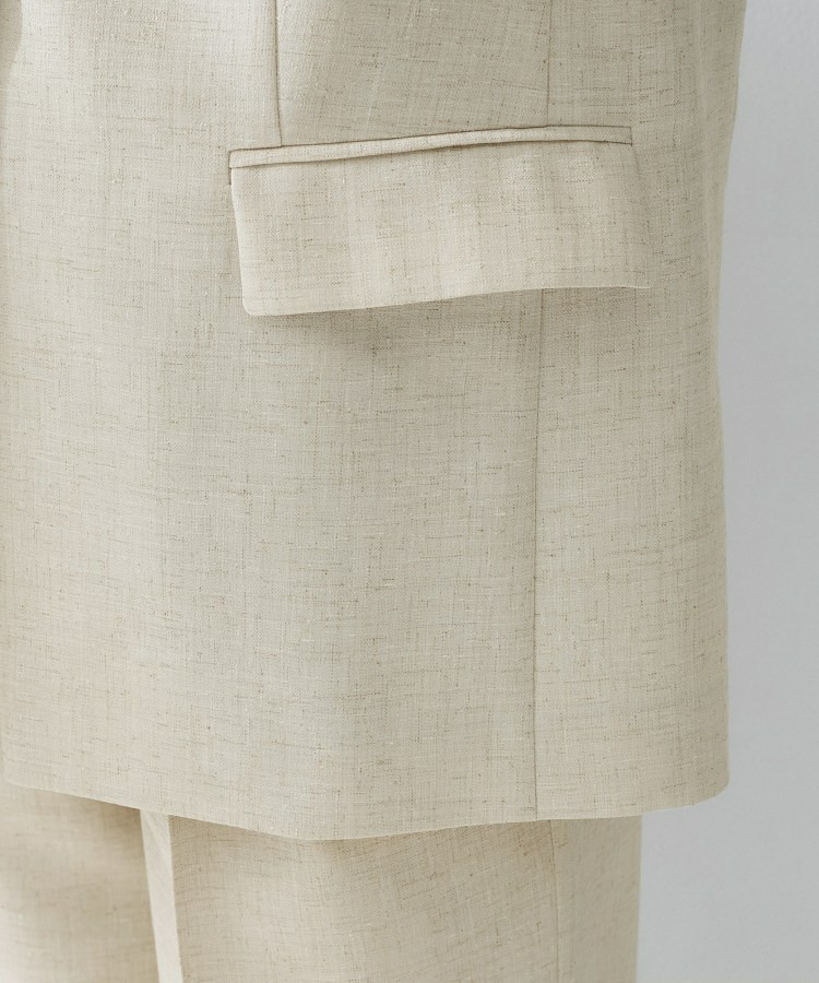 梳毛調合繊と麻調合繊を融合させた新素材で、マットで綺麗な表面感とドライタッチで麻を思わせる表面感が特徴です。