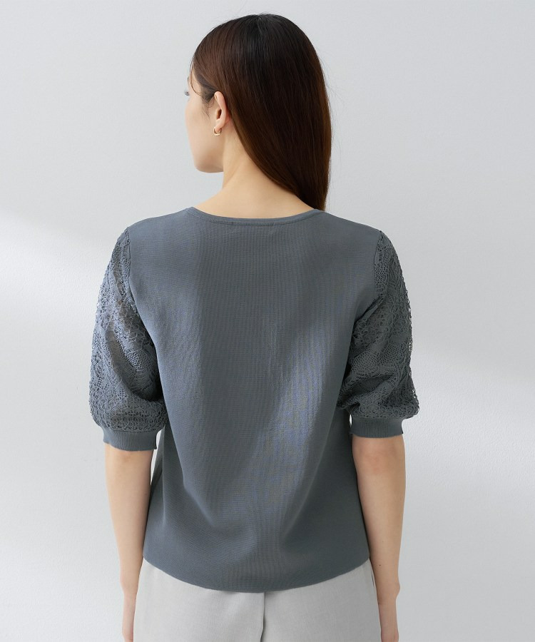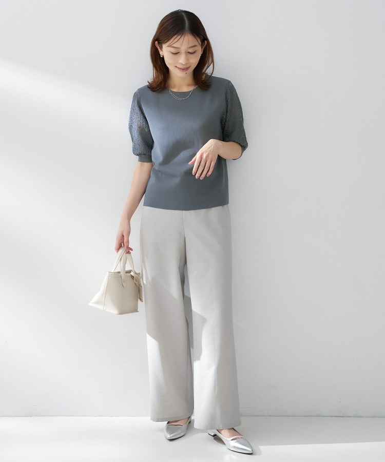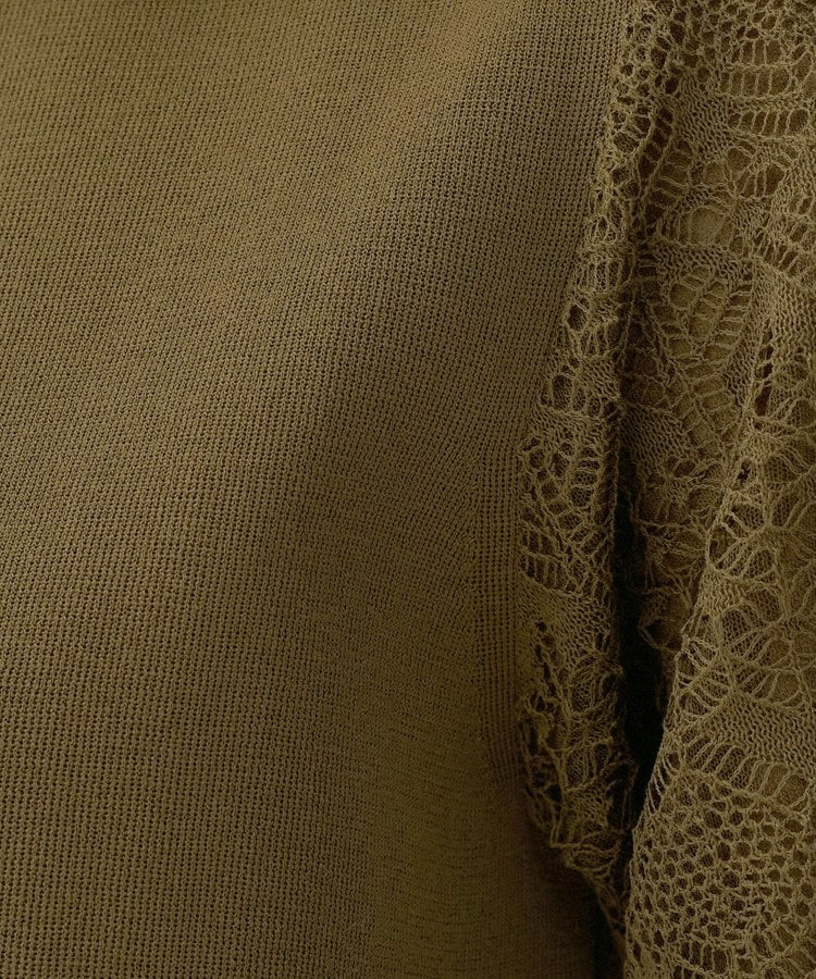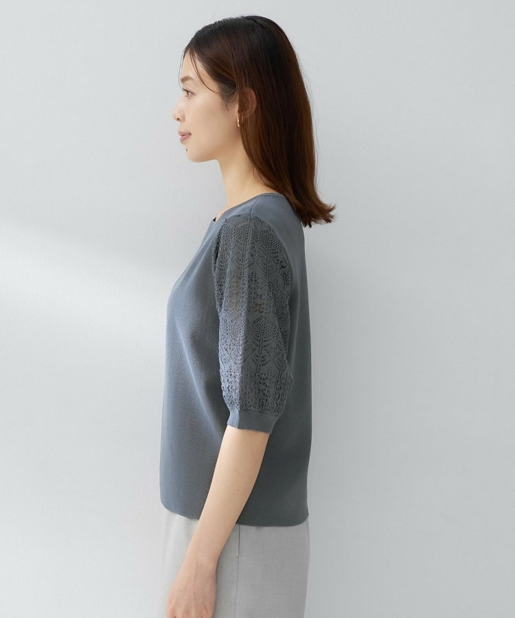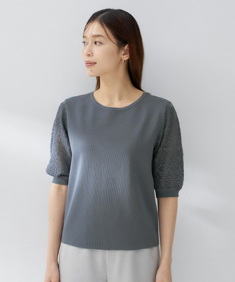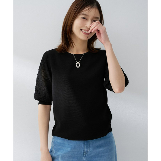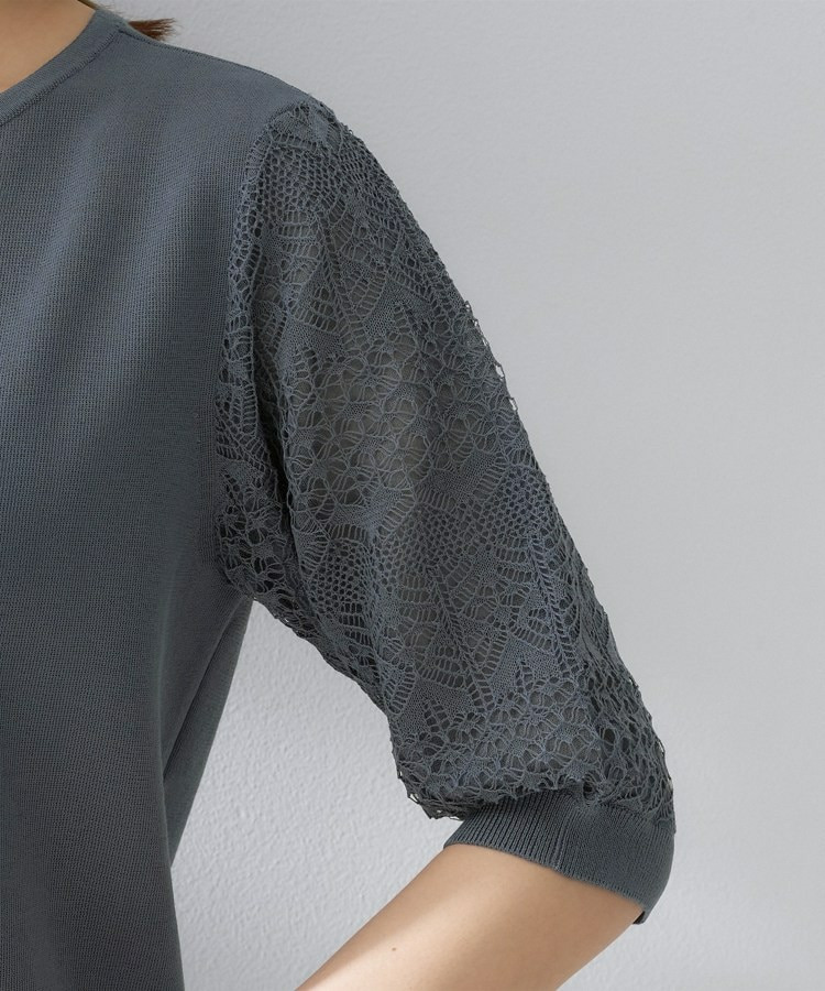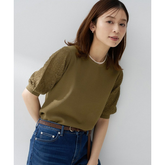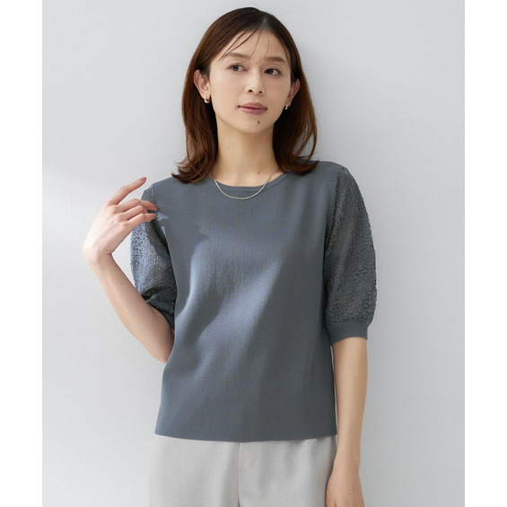 袖の繊細な透かし柄が印象的なニットトップス。