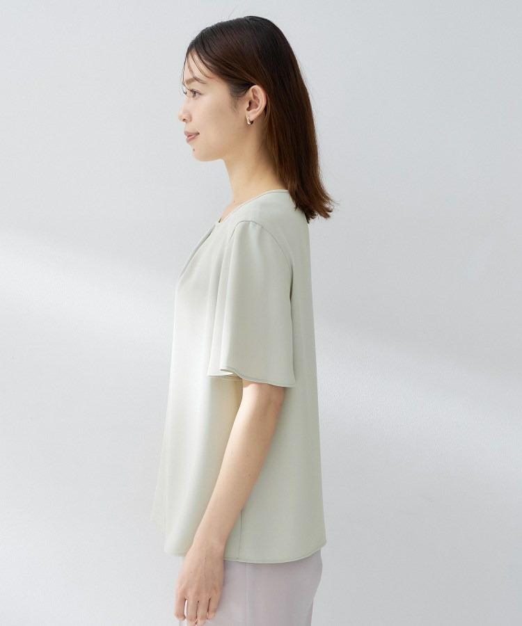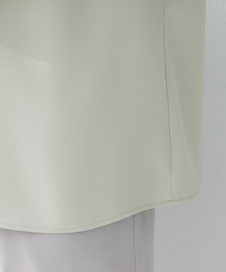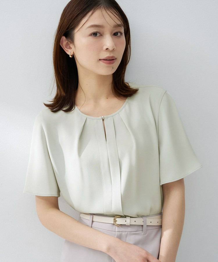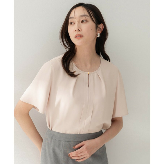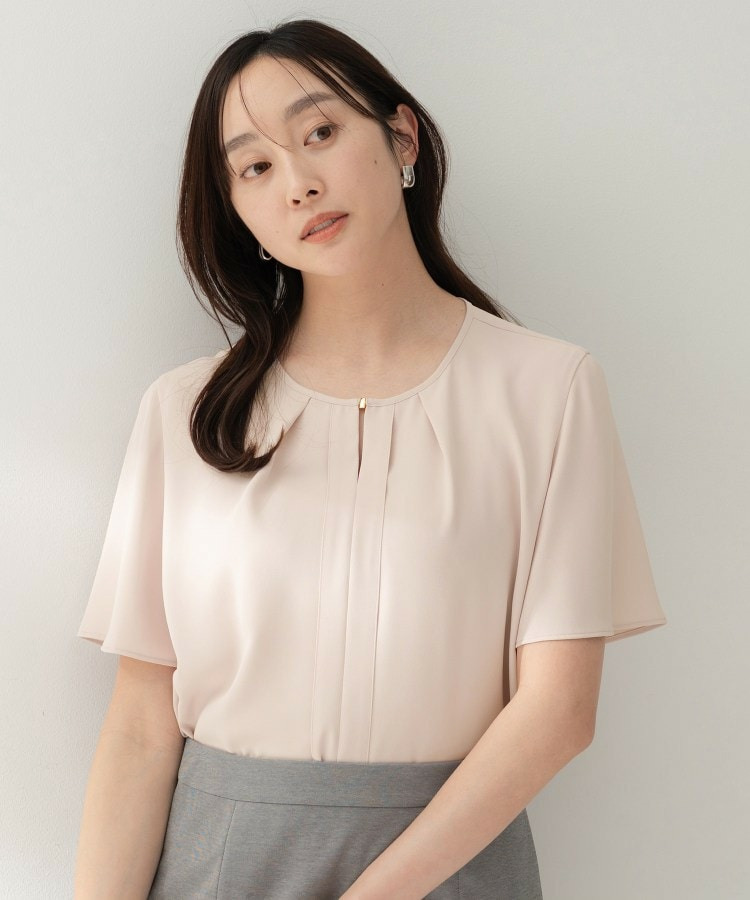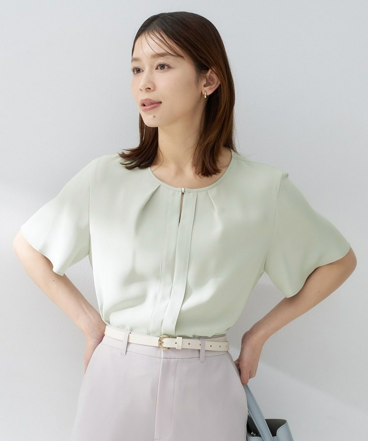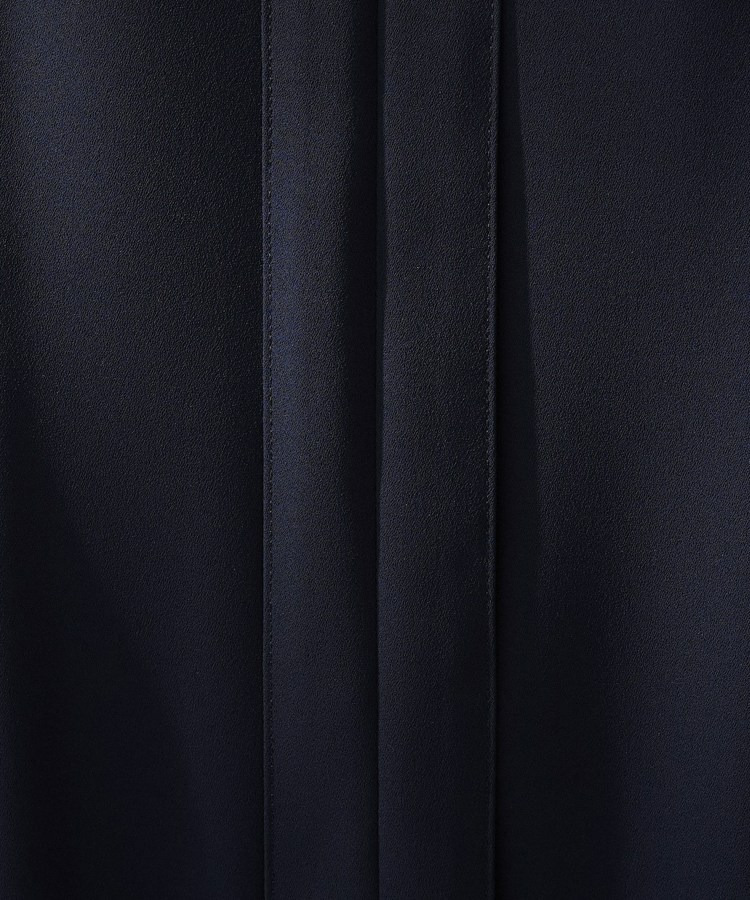 縦ラインディテールが印象的な、クリーンでミニマルなデザインのブラウス。