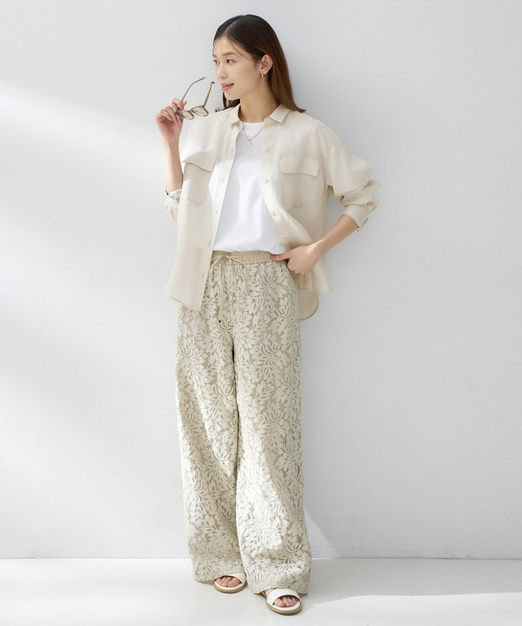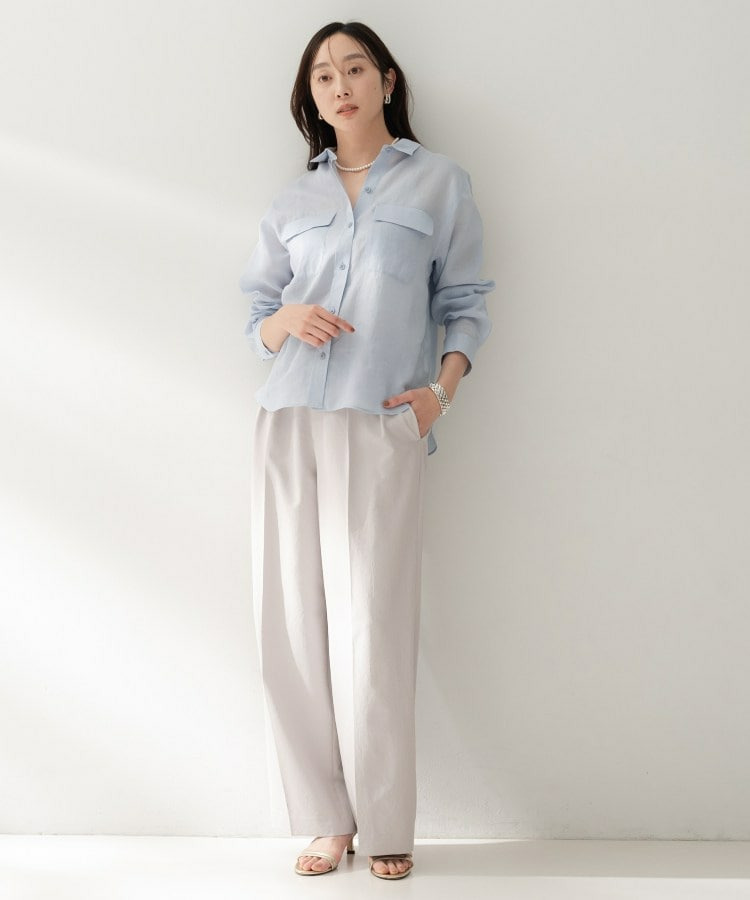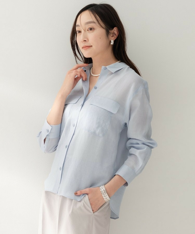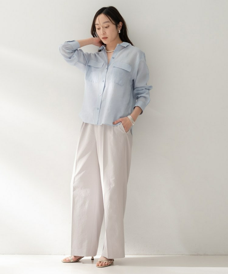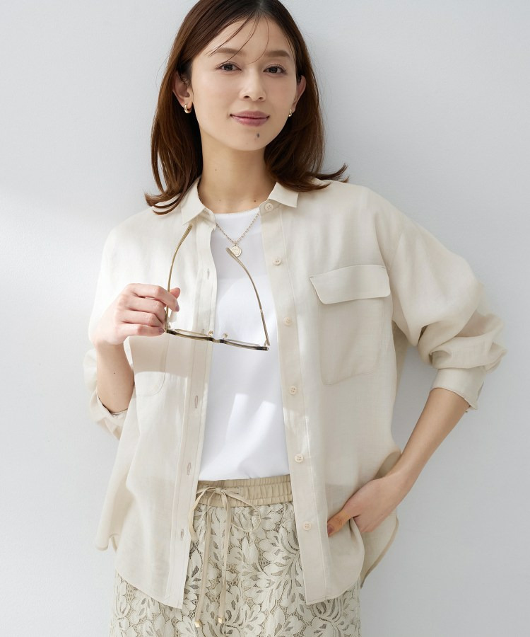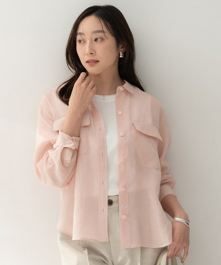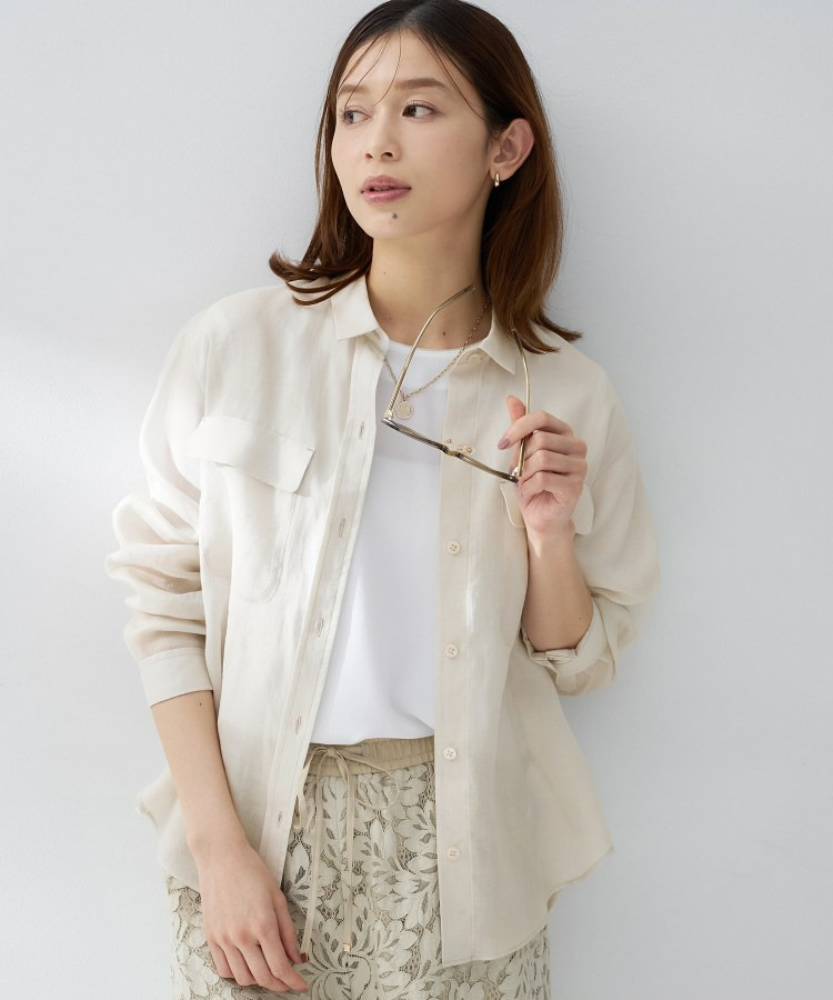 タンクトップやキャミソールの上に重ねて、シアー感を楽しむことで春夏のコーディネートに軽やかさをプラスしてくれる1枚です。