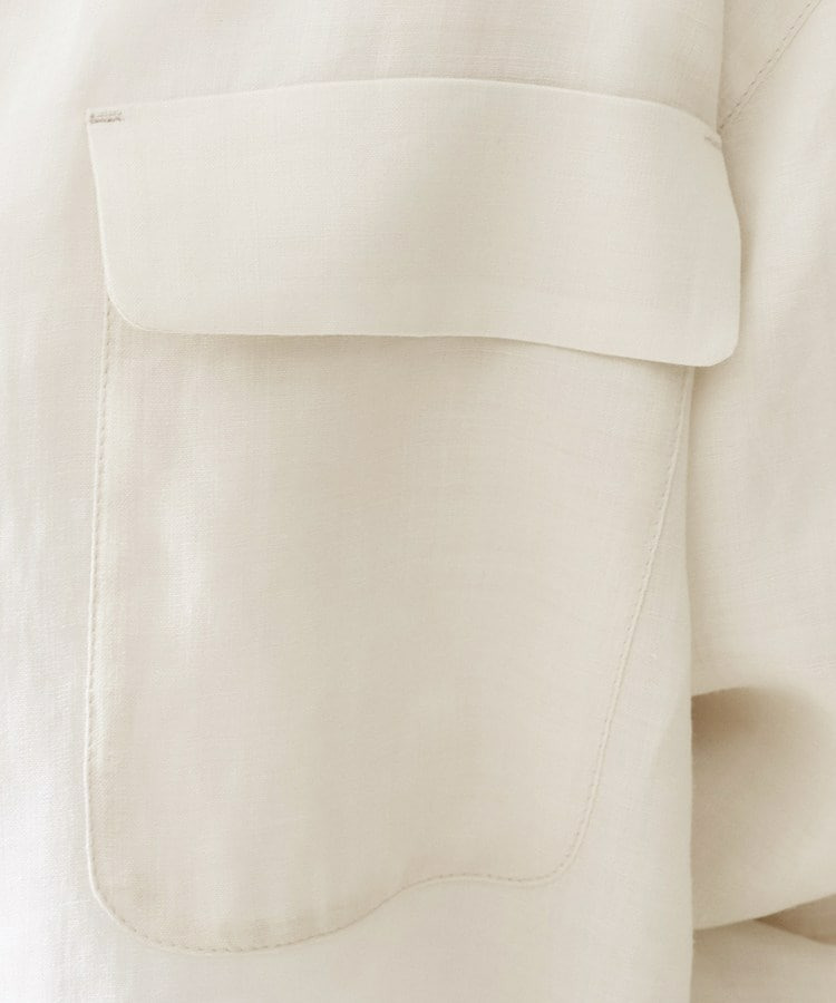 通年より短めの着丈が軽やかさを引き立て、飾りとしてデザインされたフロントポケットがアクセントに。