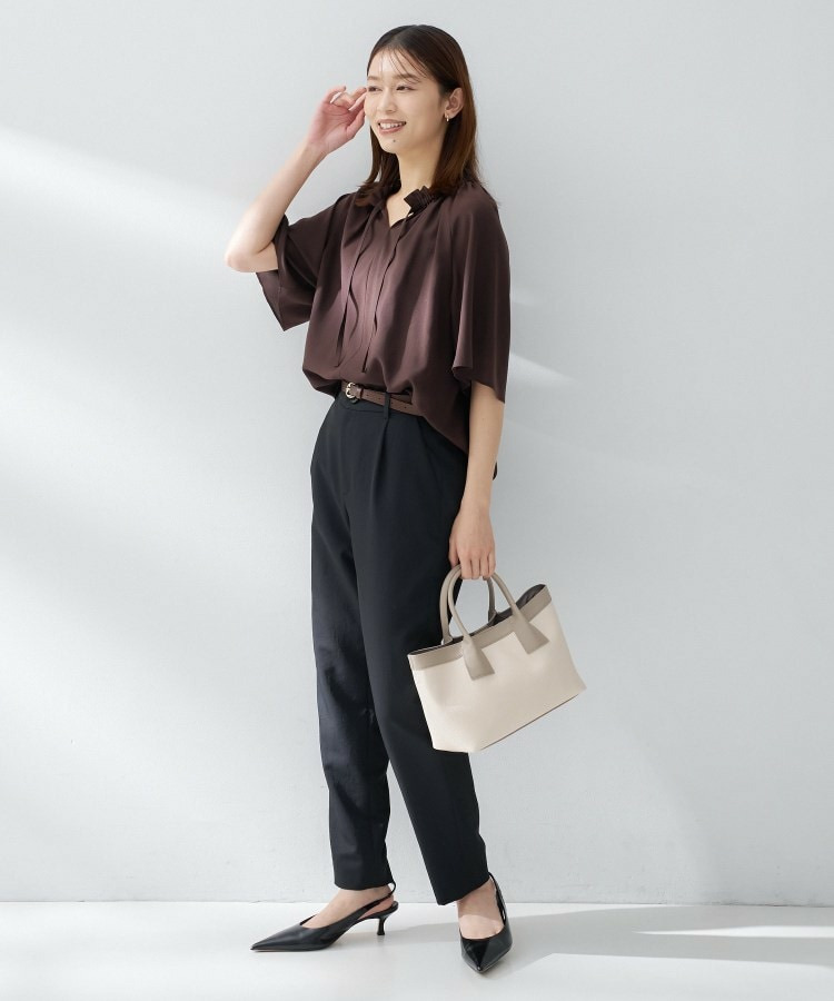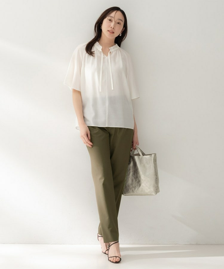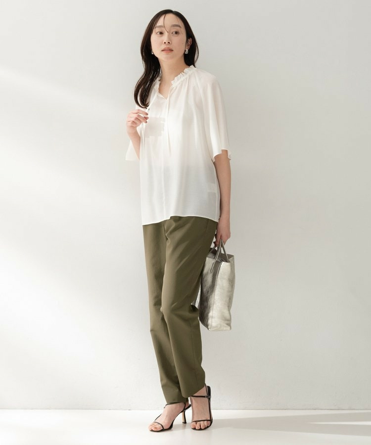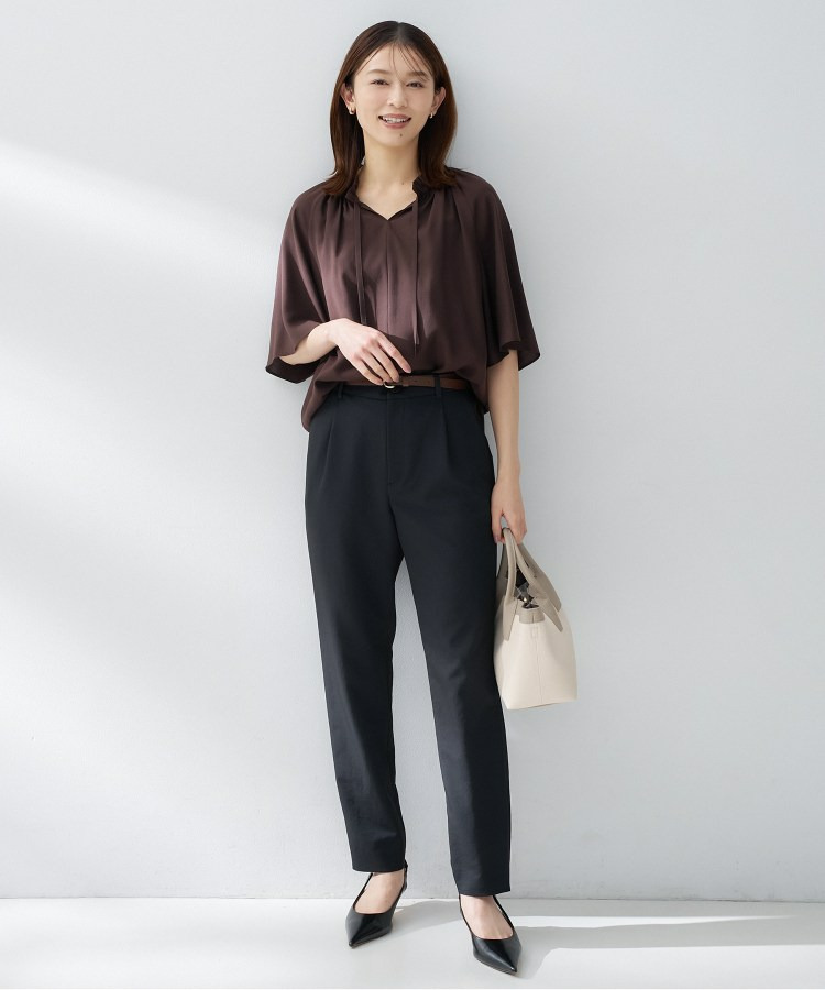程よい落ち感とストレッチ性のある素材で動きやすく、デイリーにもきちんとしたシーンにも汎用性の高い一枚です。