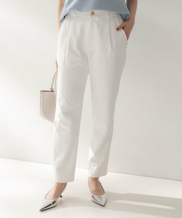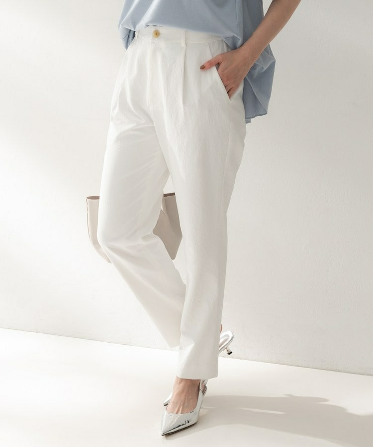 1タックのすっきりとしたシルエットのベーシックテーパードパンツ。