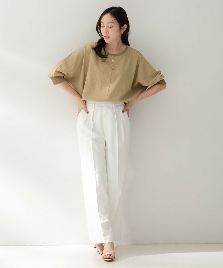 裾に向かってコンパクトになっているので、ドルマンでも大きく見えすぎず、腰あたりで止まり自然なブラウジングが表現できます。