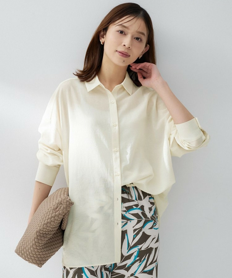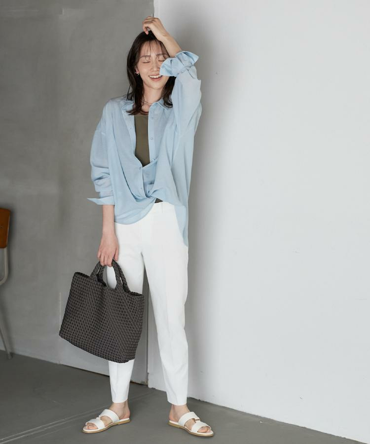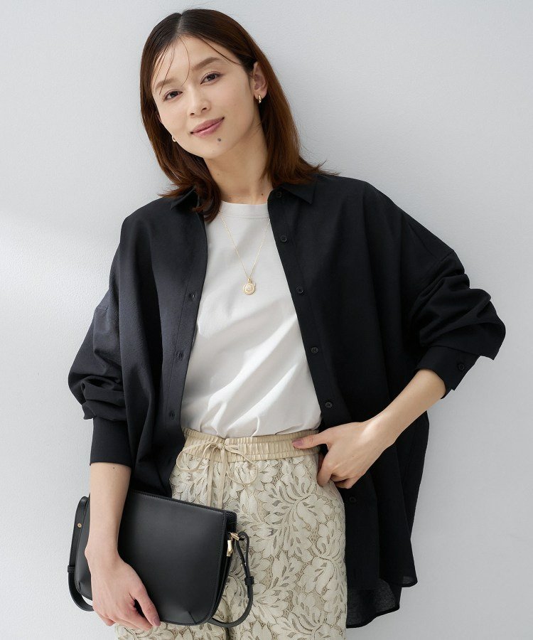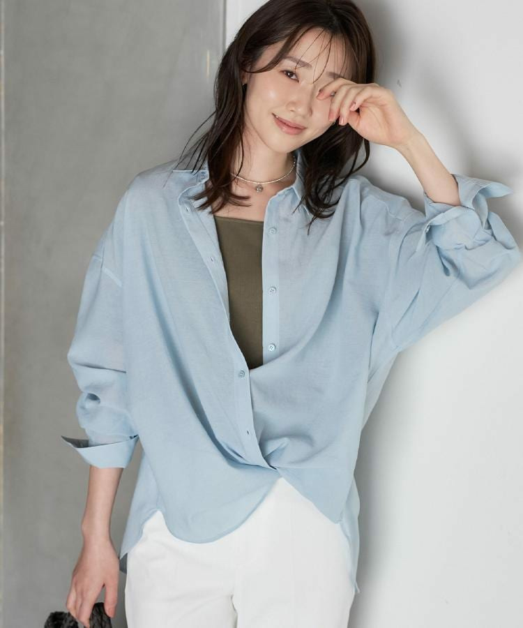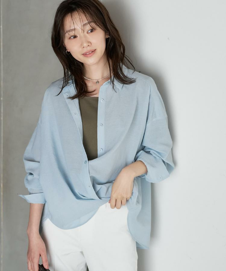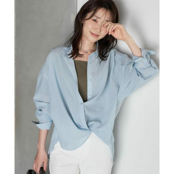 ゆったりとしたシルエットのビッグシャツは、カシュクールでも着用できる仕様で変化の出せるデザインになっています。
