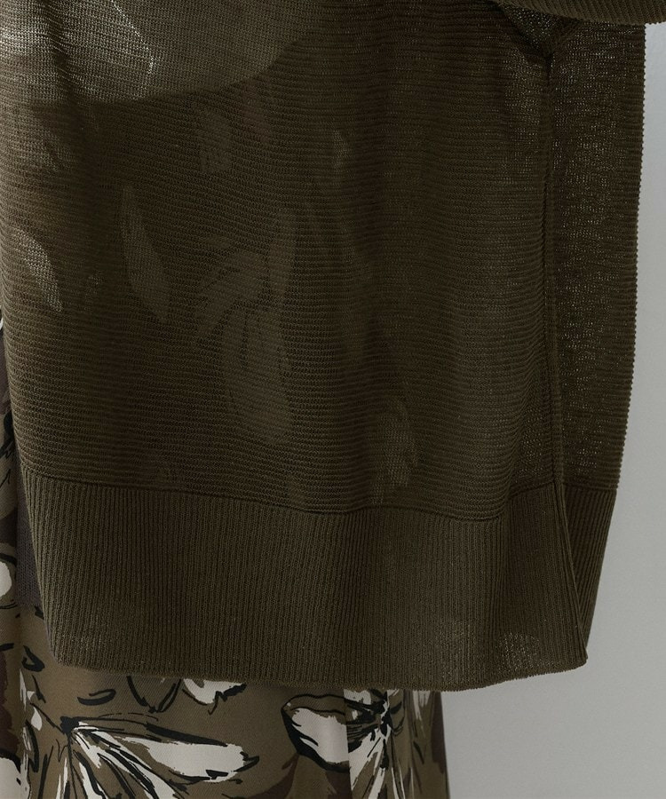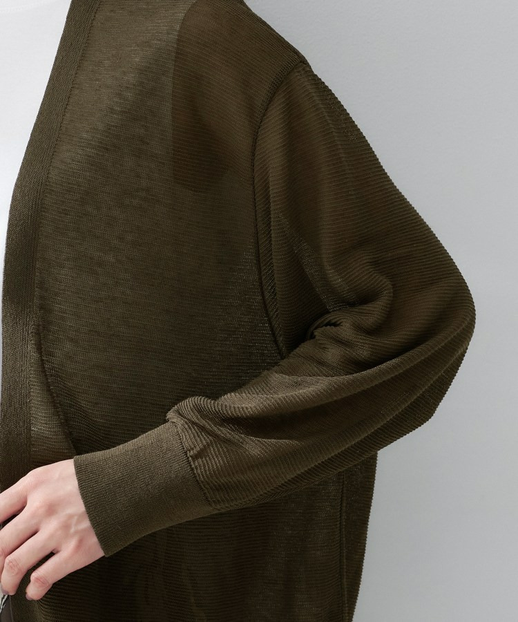 薄手で透け感のあるガーター編地の軽やかなニット羽織。