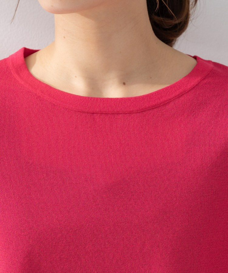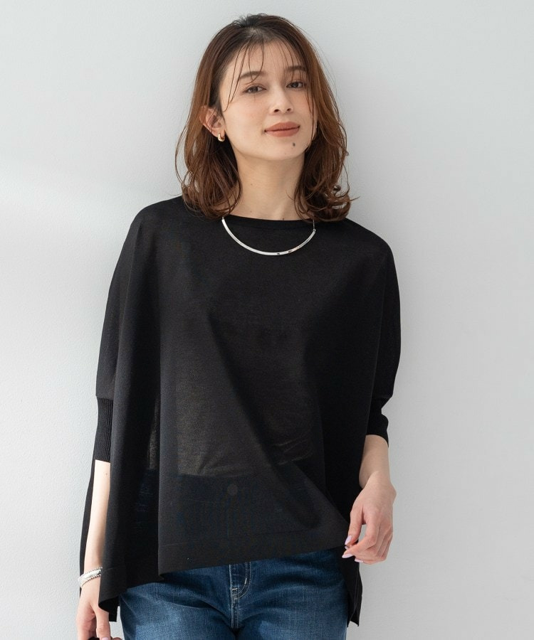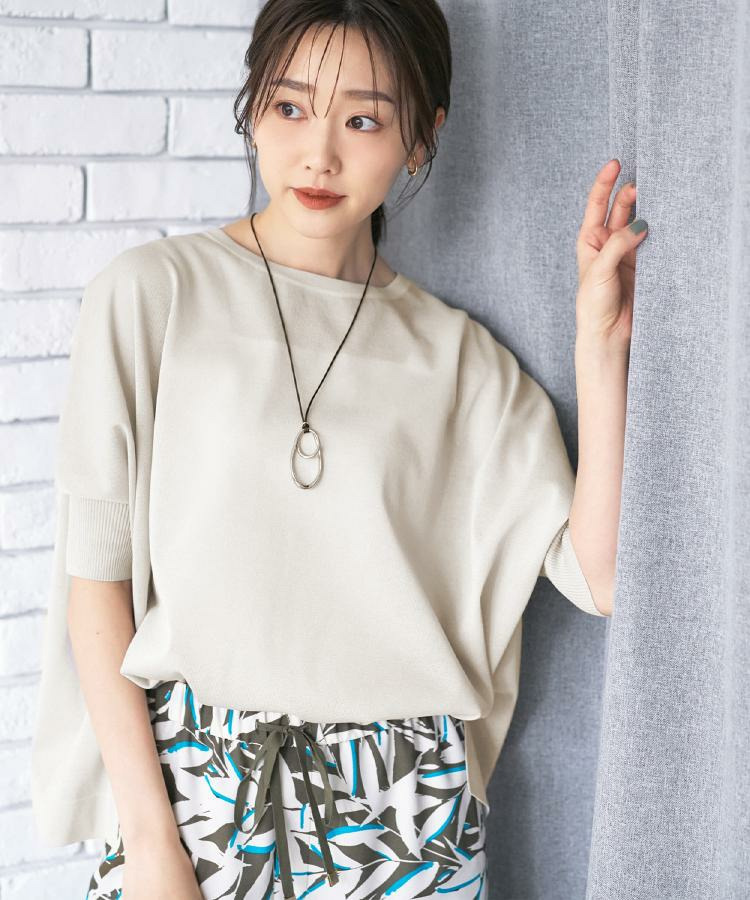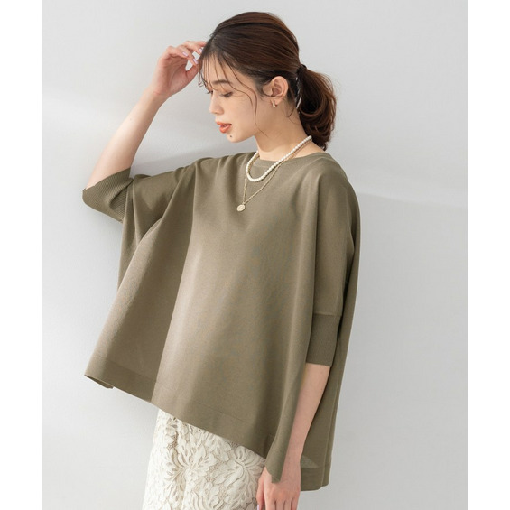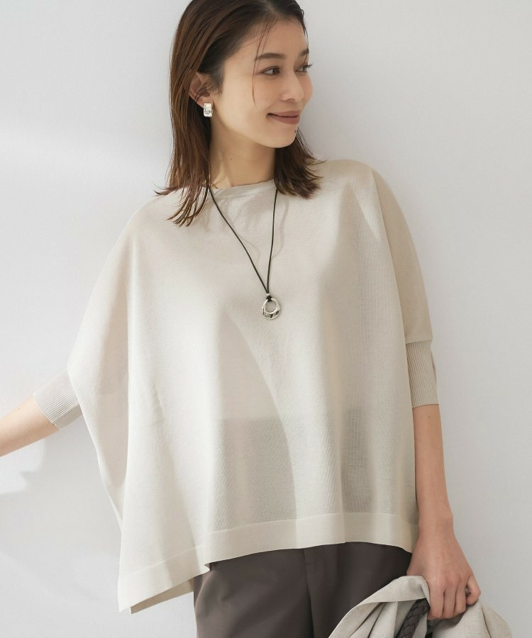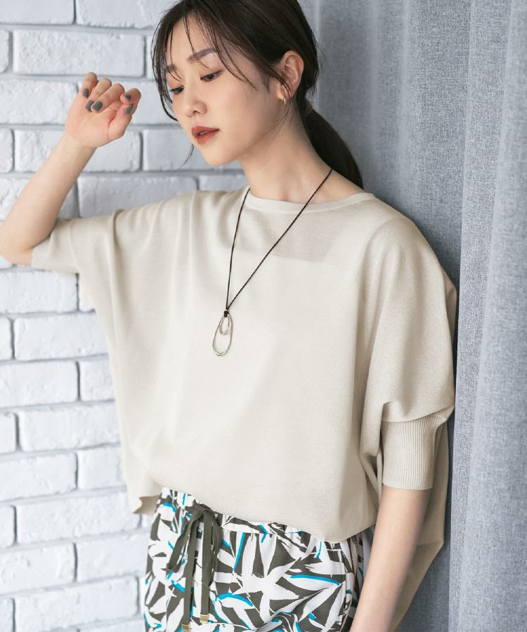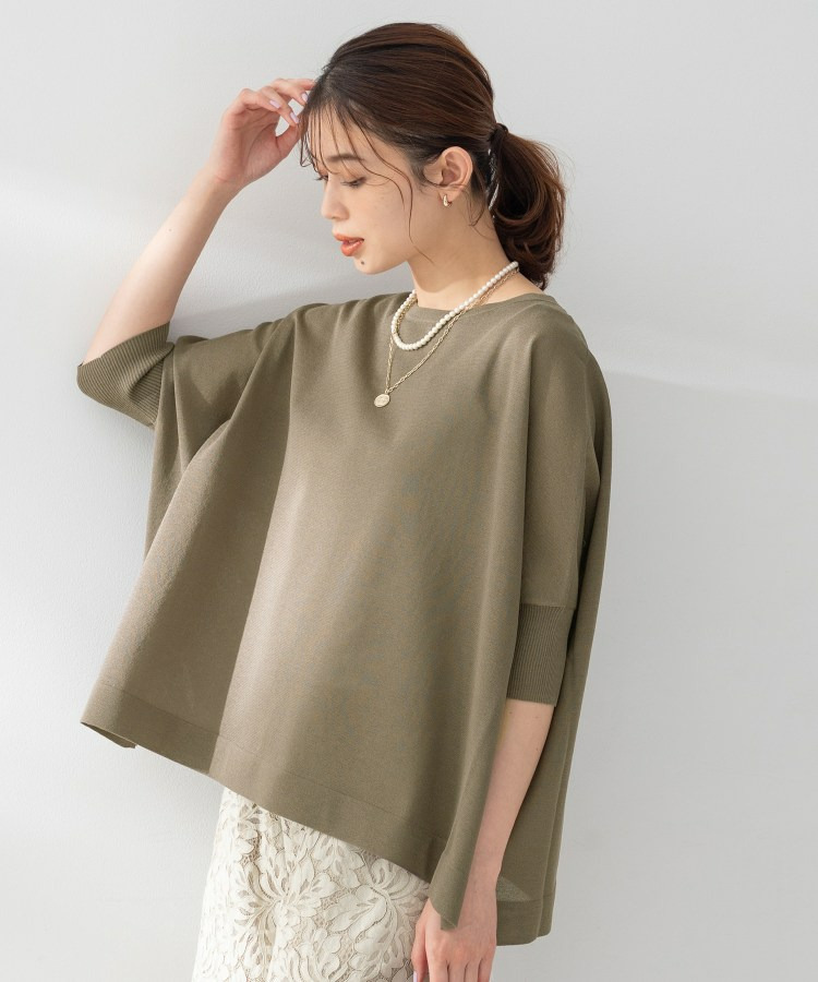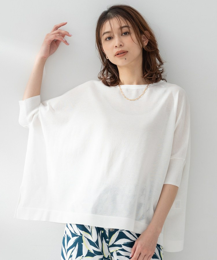 シンプルで洗練されたプルオーバーニットは、身体離れする素材感に流れるようなゆったりシルエットが魅力。