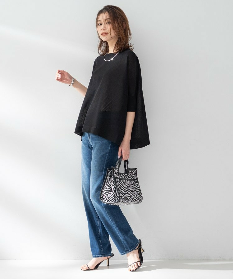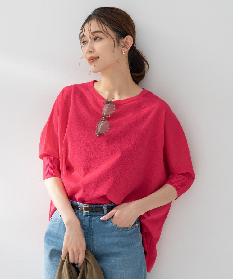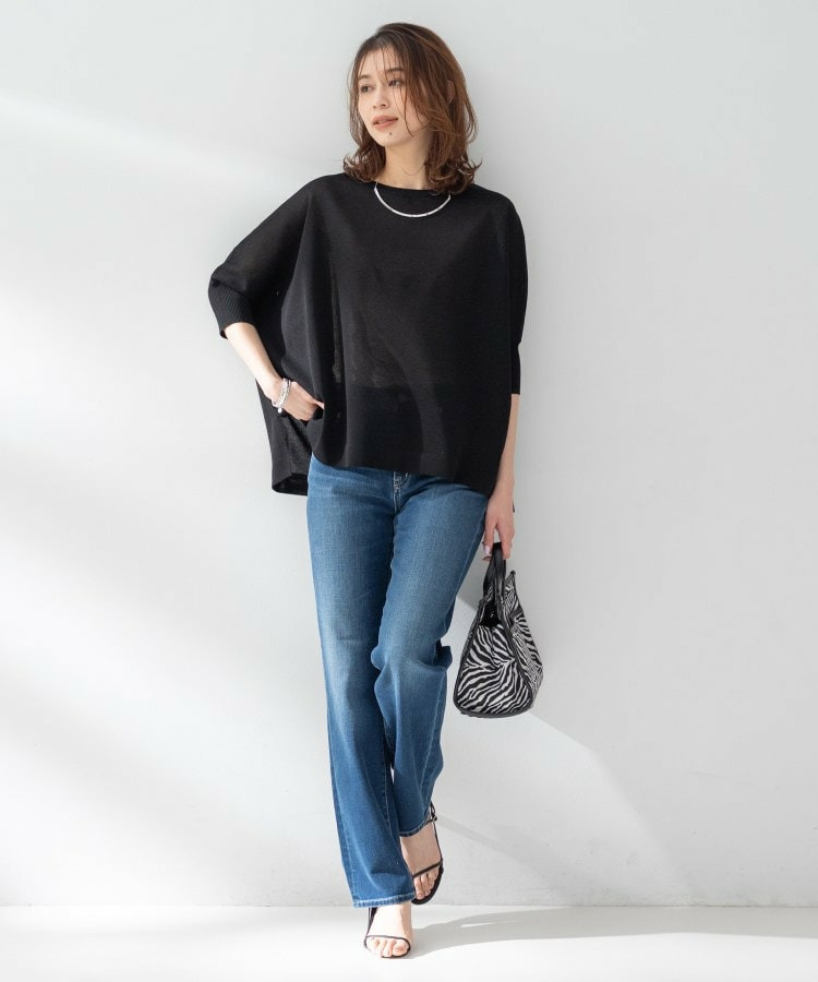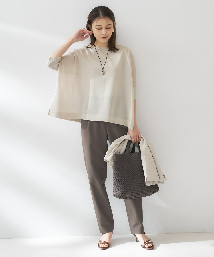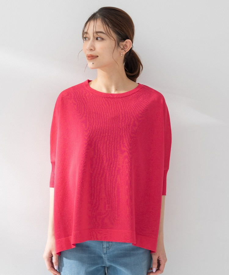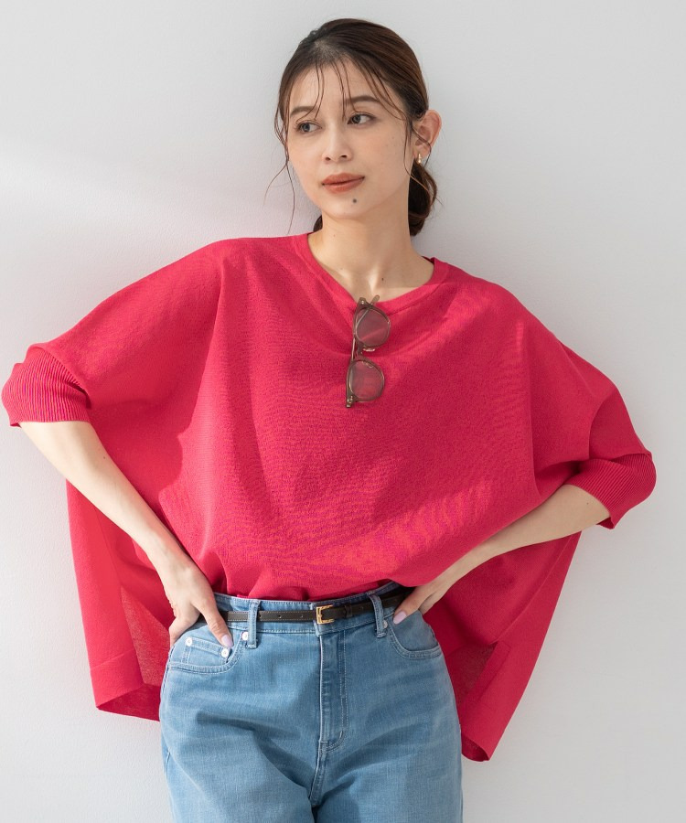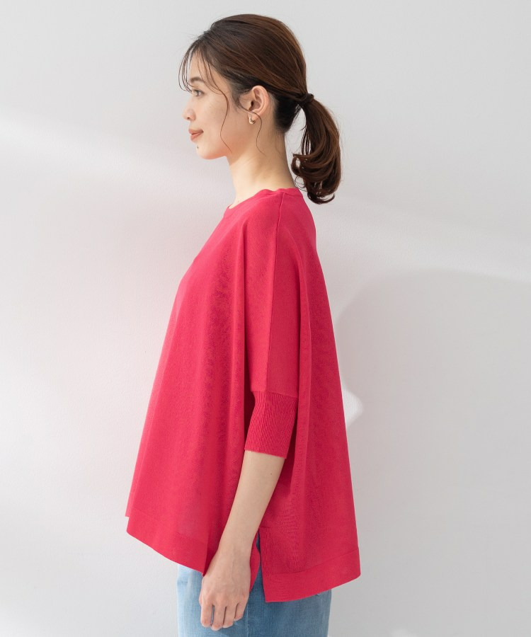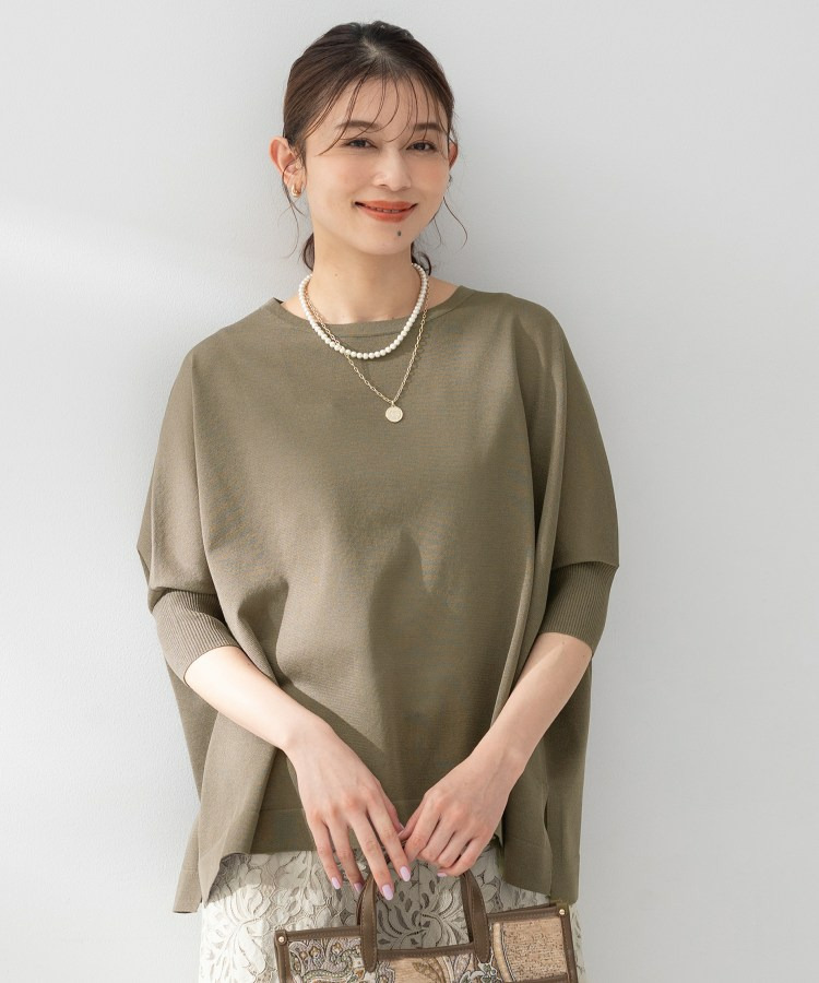 シンプルで洗練されたプルオーバーニットは、身体離れする素材感に流れるようなゆったりシルエットが魅力。
