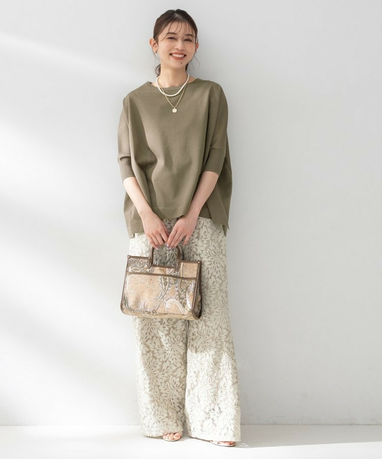 軽やかで透け感のあるデザインは、同素材のカーディガンを羽織ってアンサンブルで、レイヤードコーデもおすすめです。