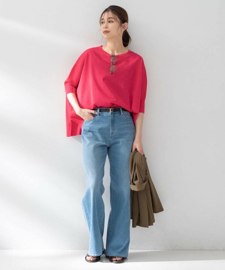 裾のフラットなラインで、綺麗めにもカジュアルにも合わせやすい一枚です。
