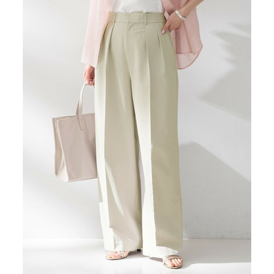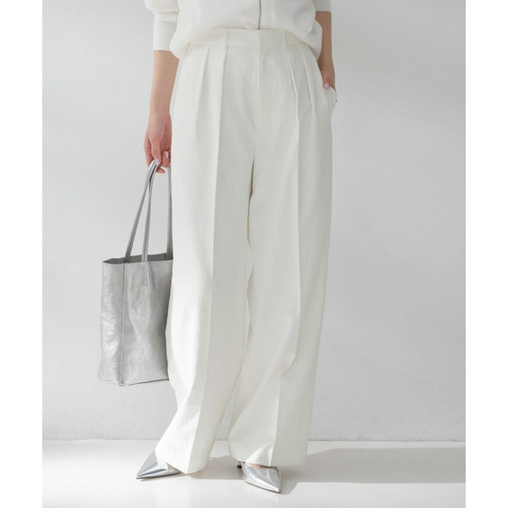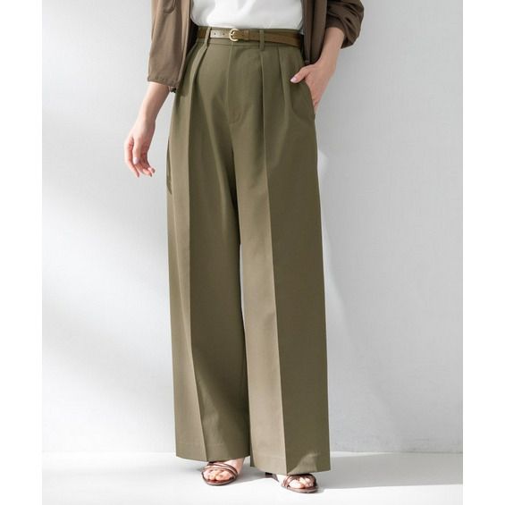 このワイドパンツは、ウエスト部分に2タックを採用することで、腰回りがゆったりしながらもスッキリとまとまるデザインです。