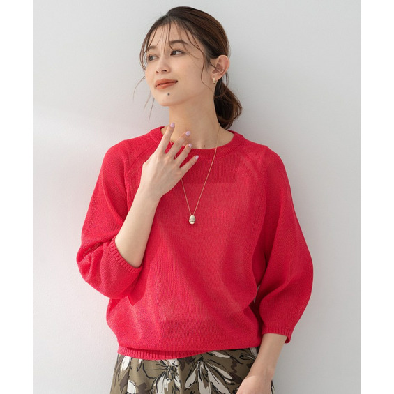 軽量でさらりとした質感が涼しい着心地を叶え、真夏でも快適なざっくり感のあるミドルゲージ編みが特徴的なニットプルオーバー。