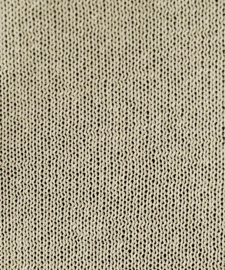 木材パルプを原材料に作られた抄繊糸とリサイクル・ポリエステルを撚り合わせ、盛夏時期に適した清涼感とざっくりしたミドルゲージでも軽く、ハリコシのあるタッチが特徴の素材。