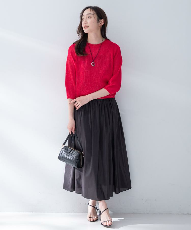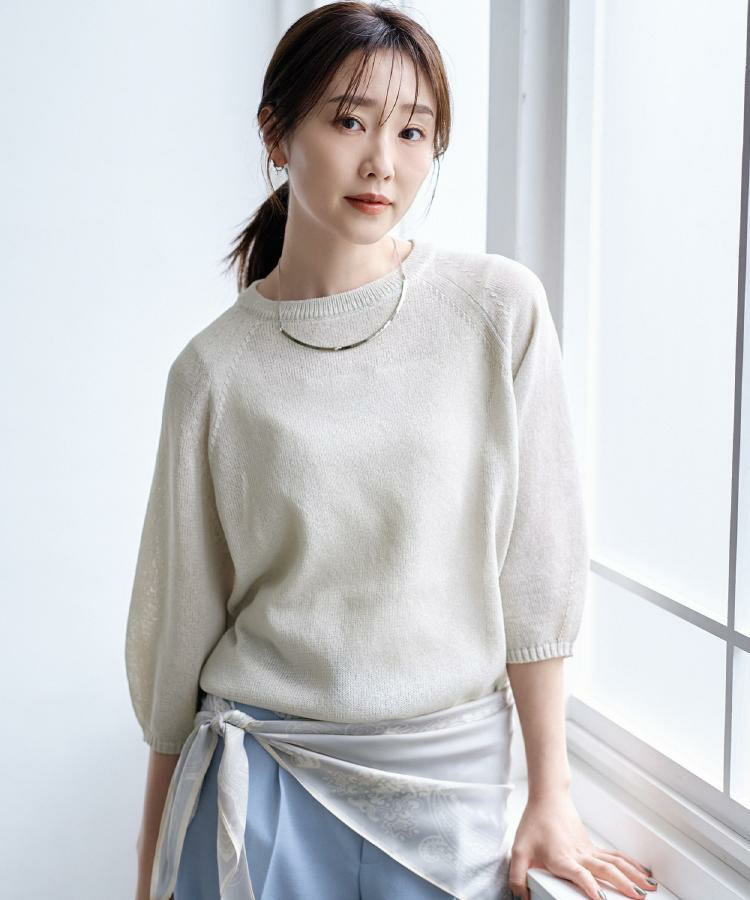 6.5分袖で軽やかさをプラスしつつ、程よい肌見せで夏のおしゃれを楽しめるアイテムです。