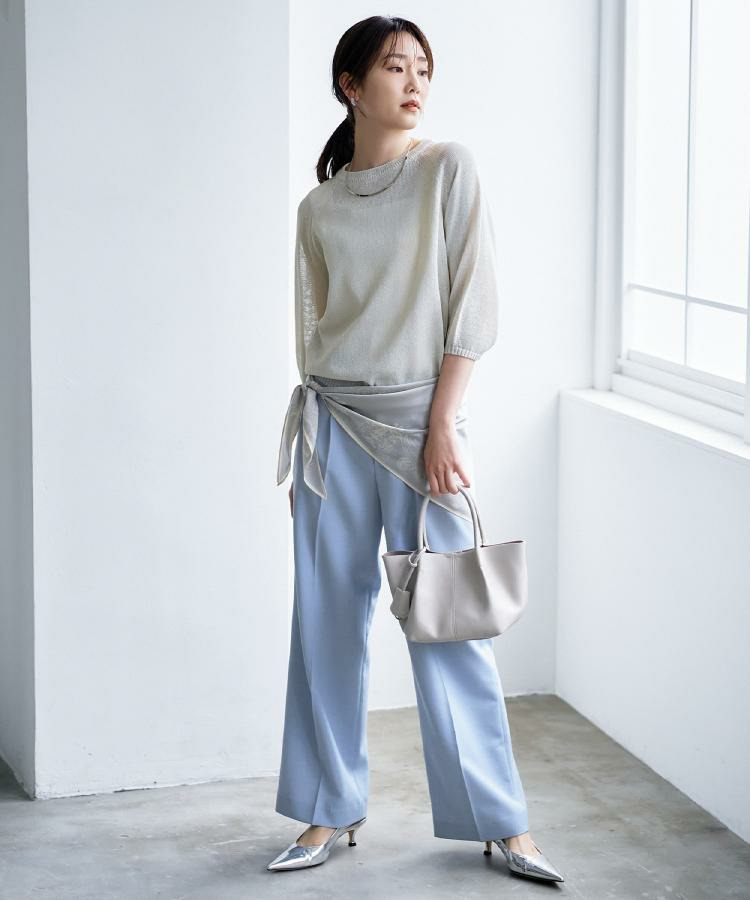 清涼感のあるワイドパンツやリネン素材のボトムと合わせて、季節感を意識したスタイリングに最適。