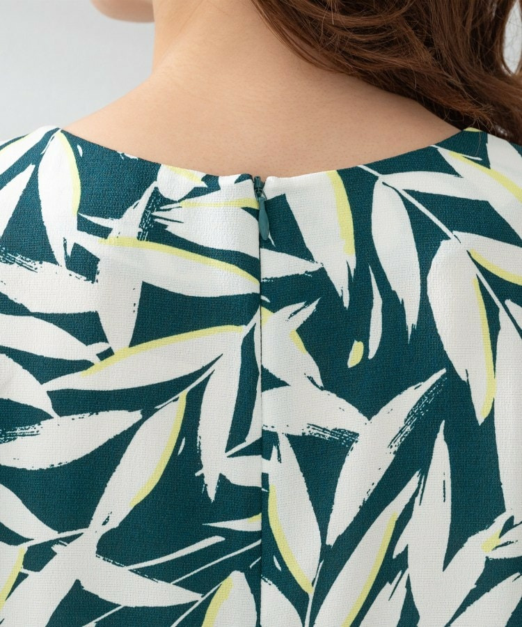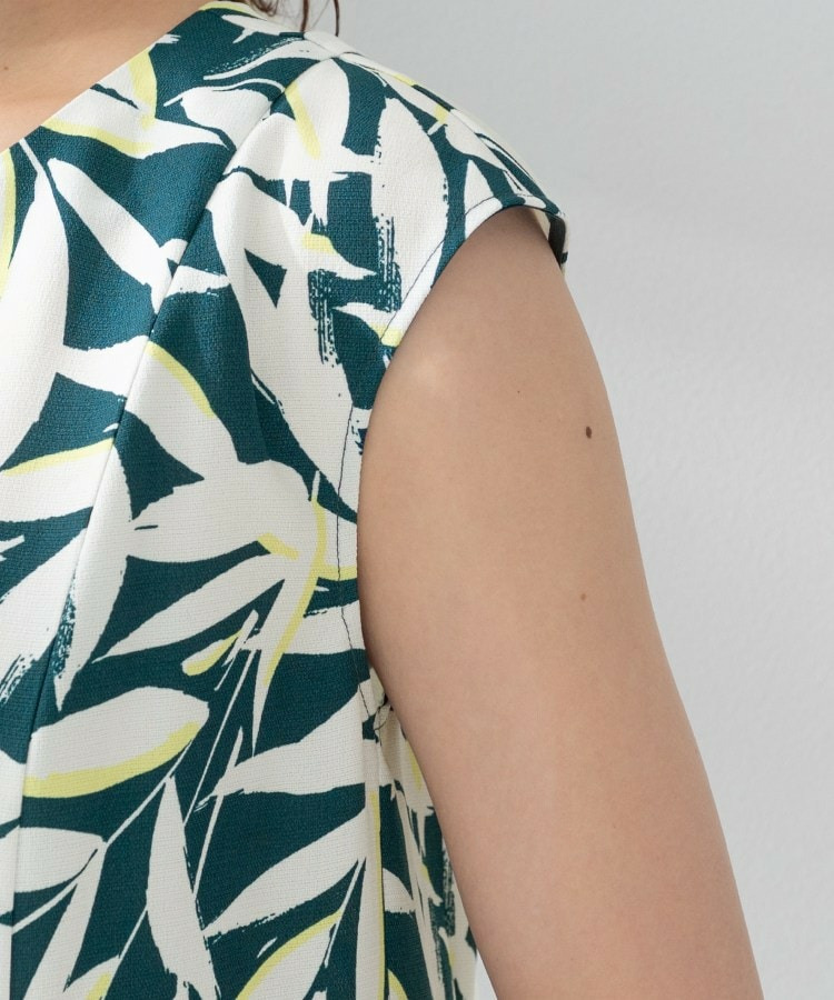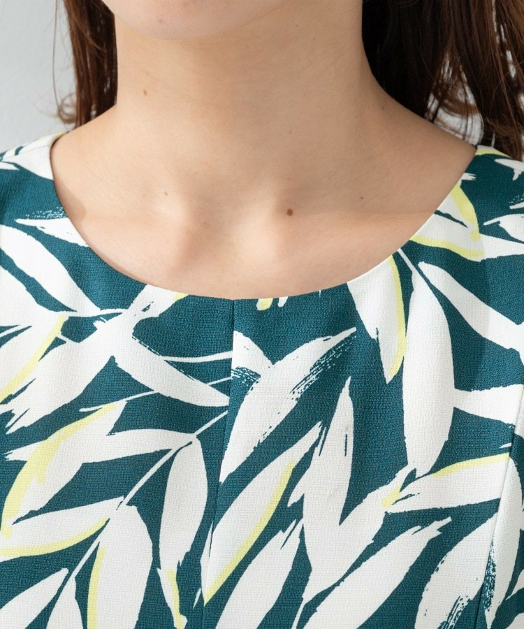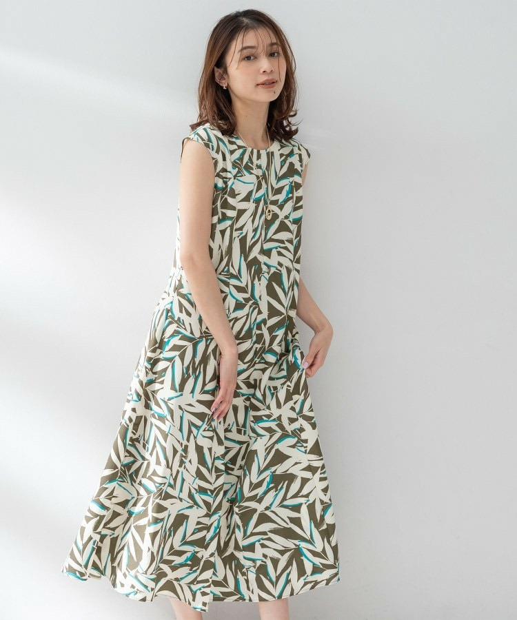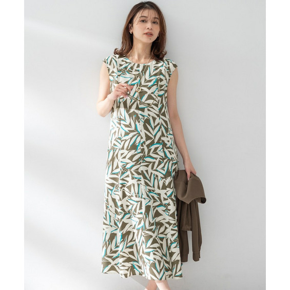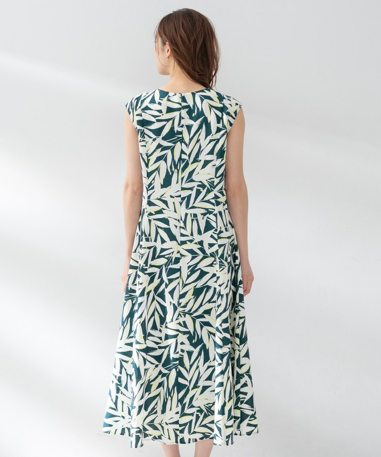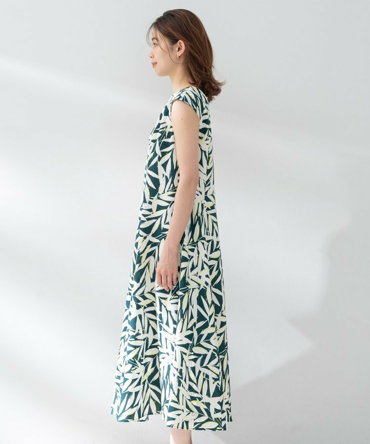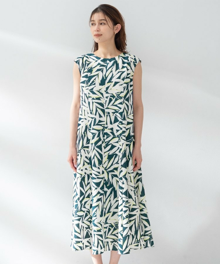 【リラクシー/着映え】ボタニカルリーフワンピース
