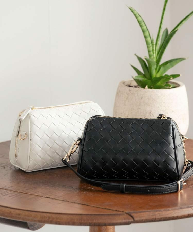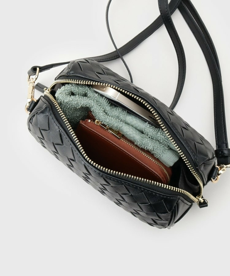 メッシュ編みが陰影のある表情を生むミニショルダーバッグです。