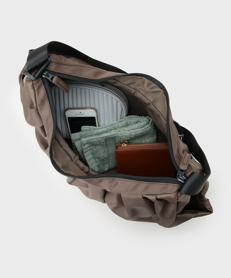 撥水ナイロンを使用した、軽さと扱いやすさが魅力のショルダーバッグ。