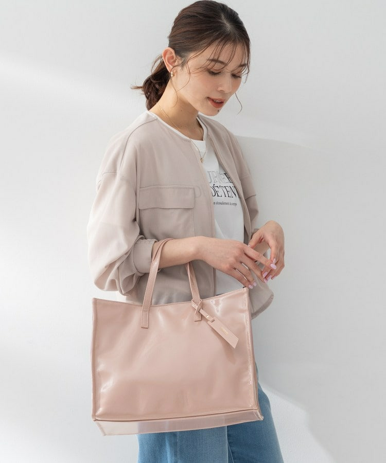 サイズ表記 FREE 高さ 26.5cm 幅(上部) 31cm 幅(下部) 33cm マチ 13.5cm 持ち手上がり 14.5cm 付属ストラップ全長 18.5cm モチーフH 10.5cm モチーフW 2cm