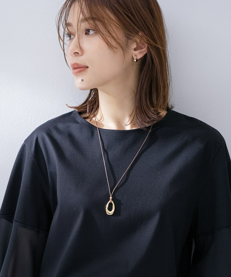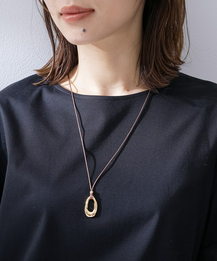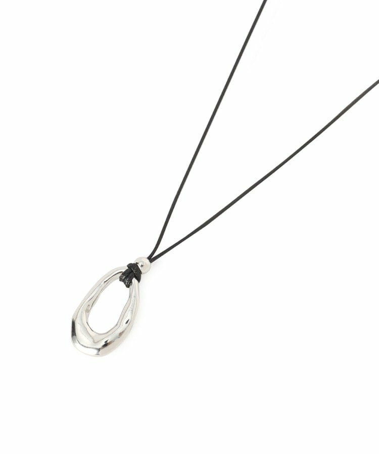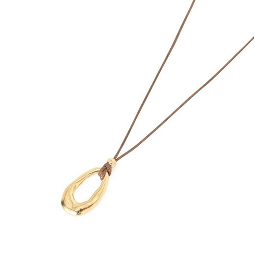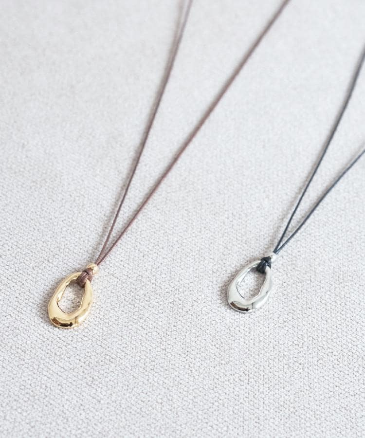 しなやかなコードにニュアンスのある有機的フォルムのトップを合わせたミニマルデザインのペンダント。