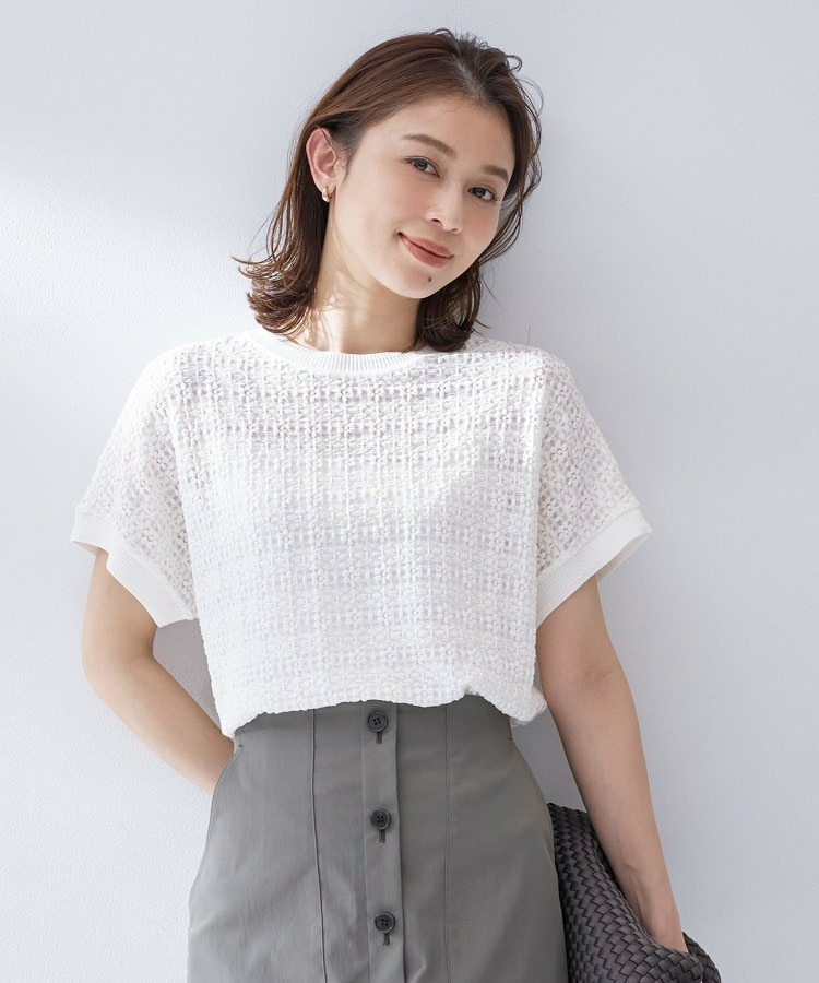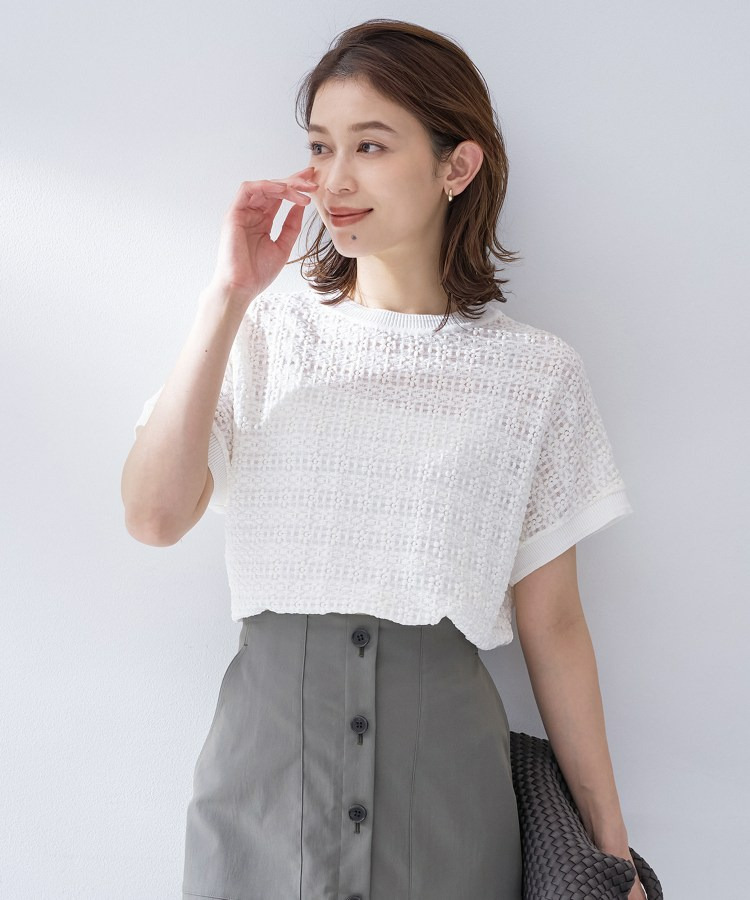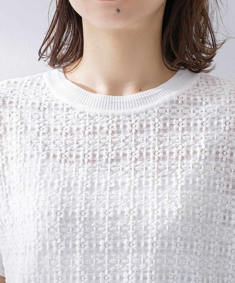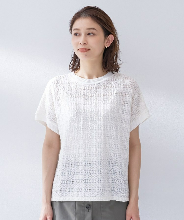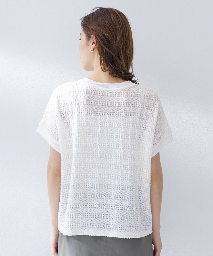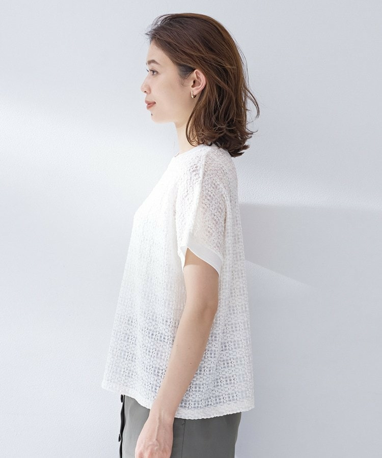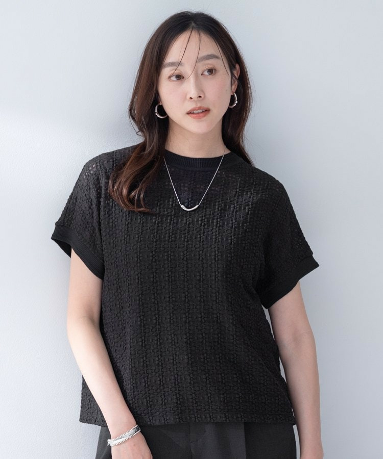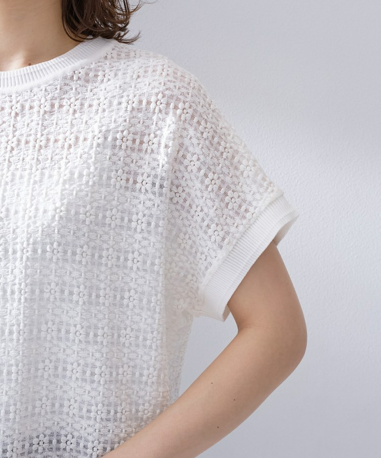 繊細な透け感が印象的な、ストレッチレースを使用したプルオーバー。