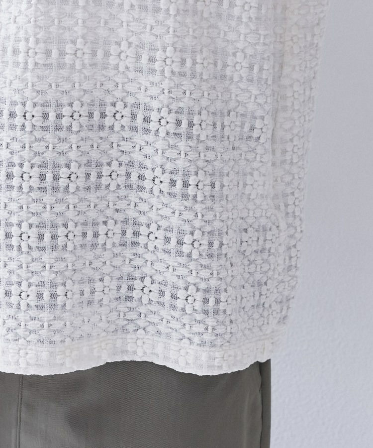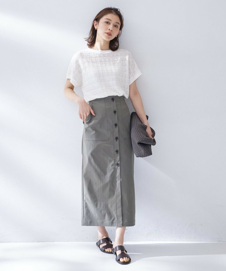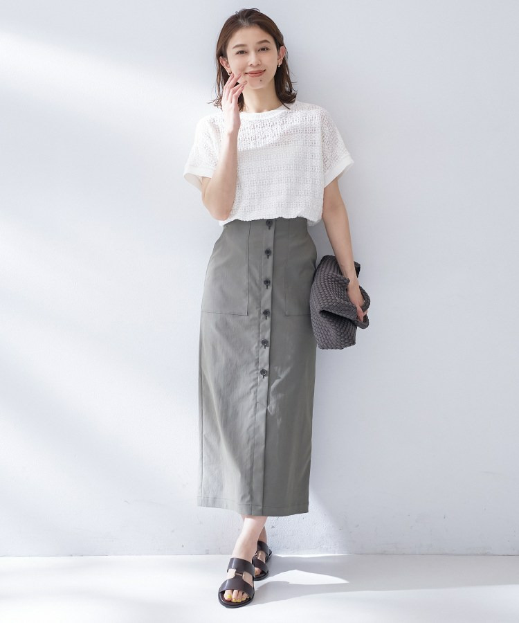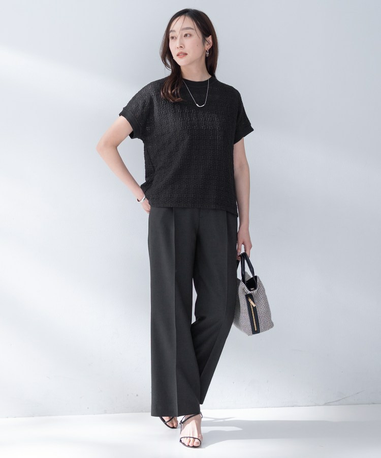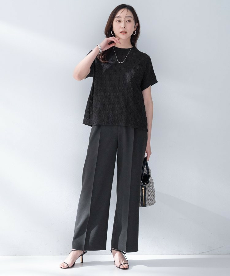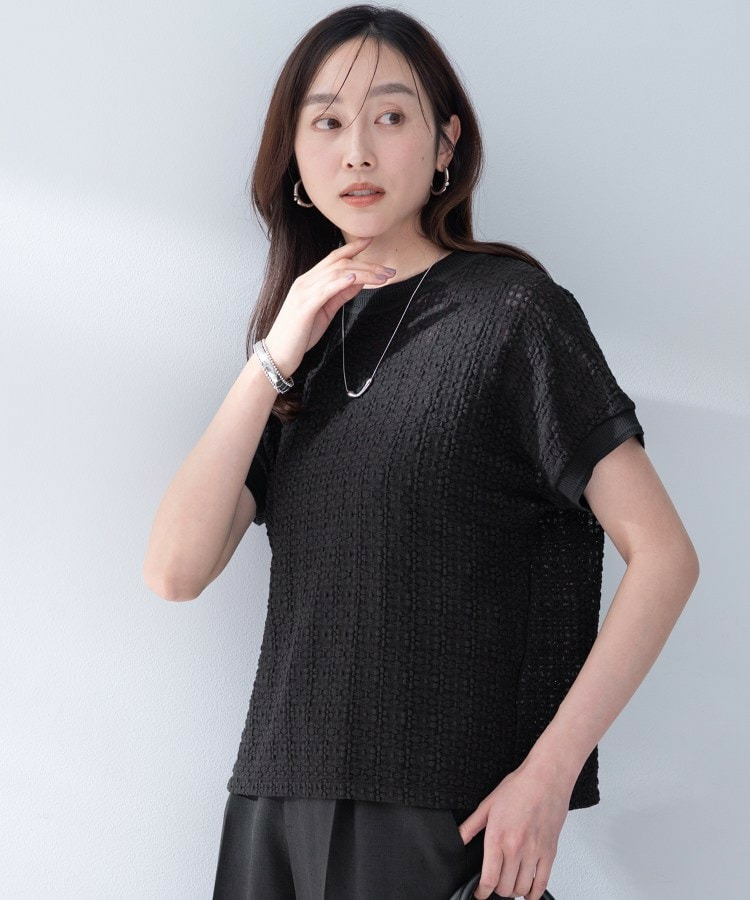 適度なシアー感と表面感が特徴で、女性らしく1枚で様になり気分が上がるトレンド感のある素材です。