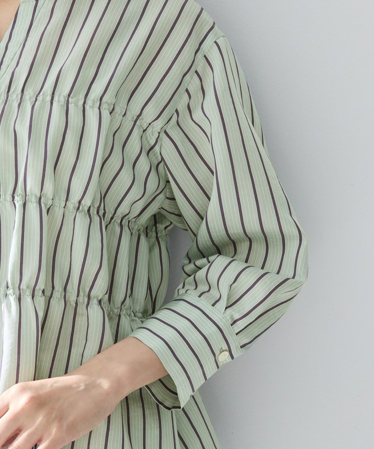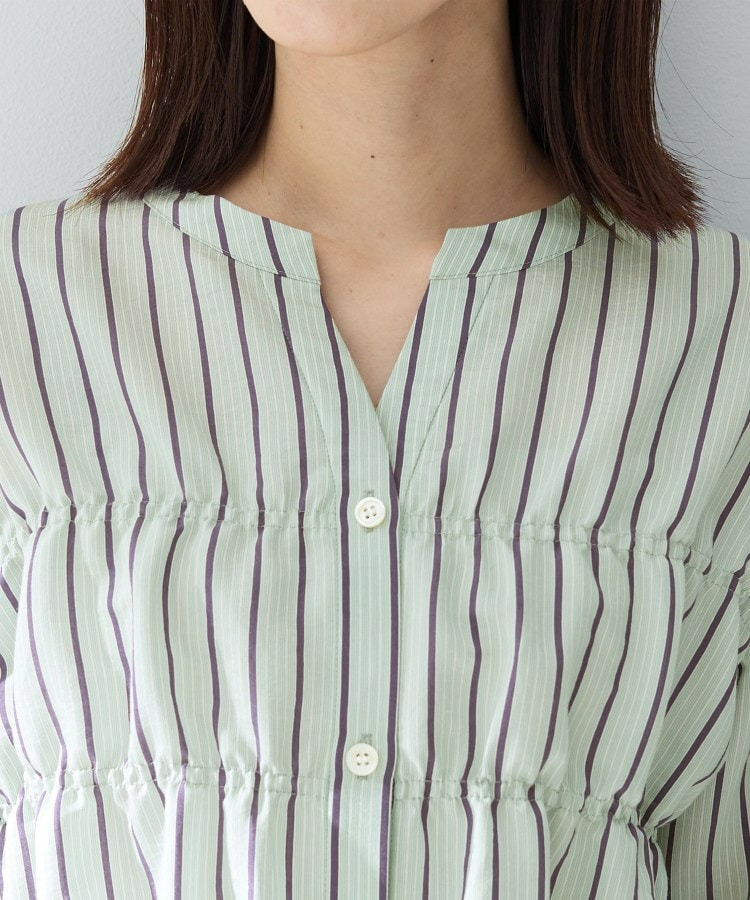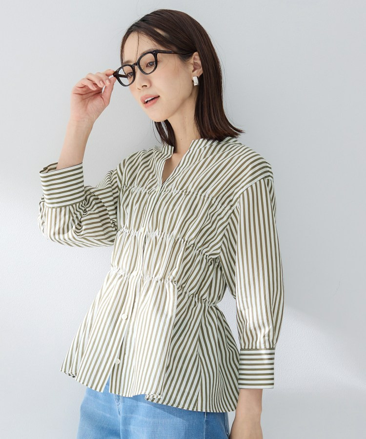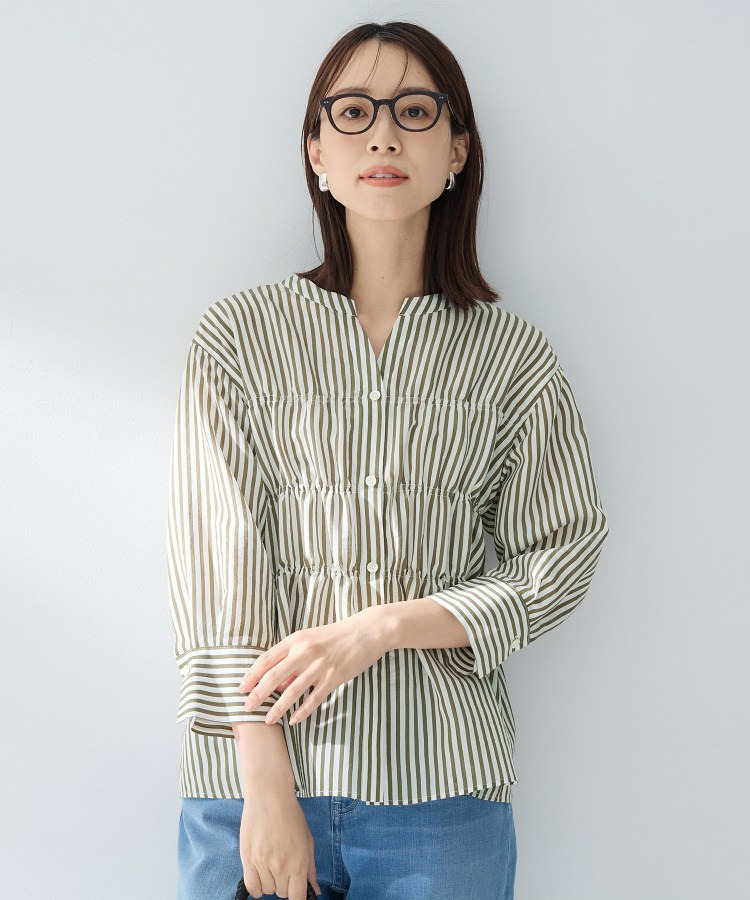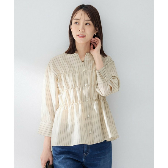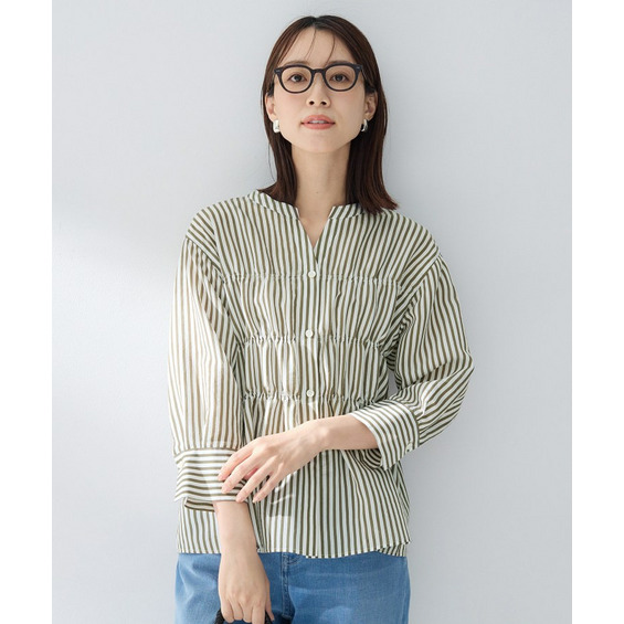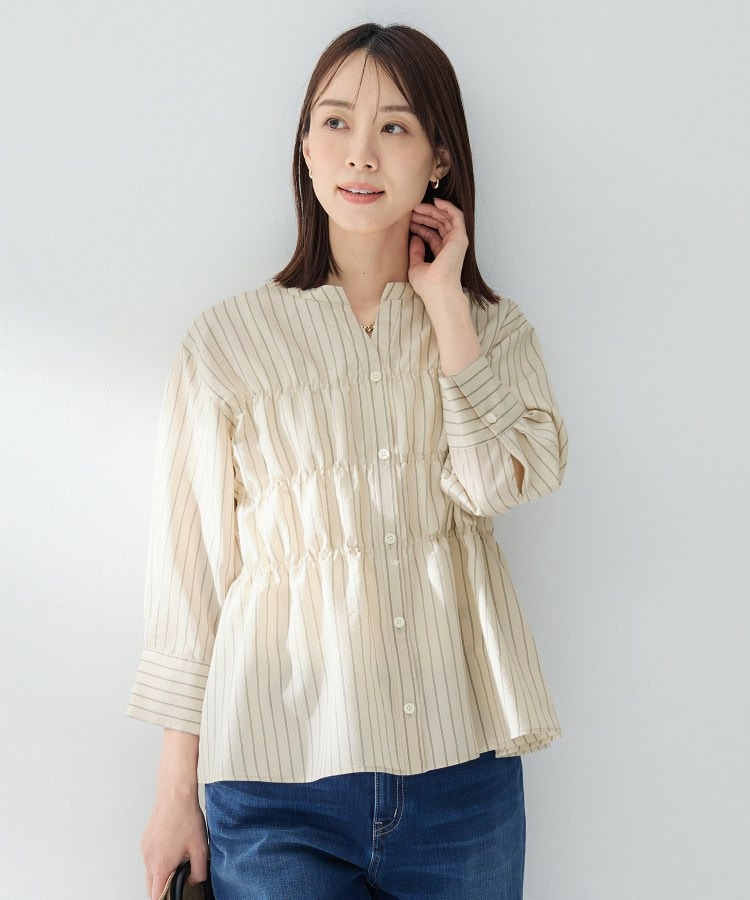 フロントに施されたシャーリングが特徴的なブラウスです。
