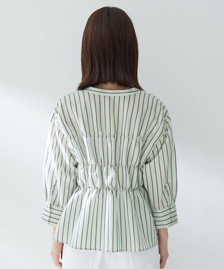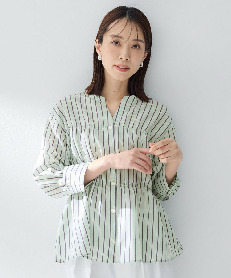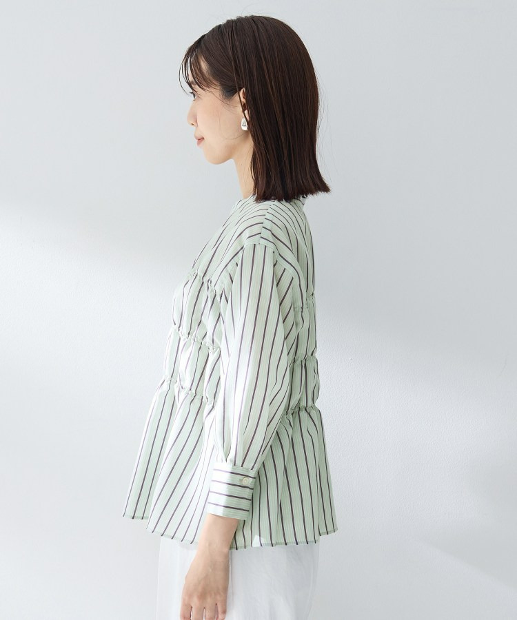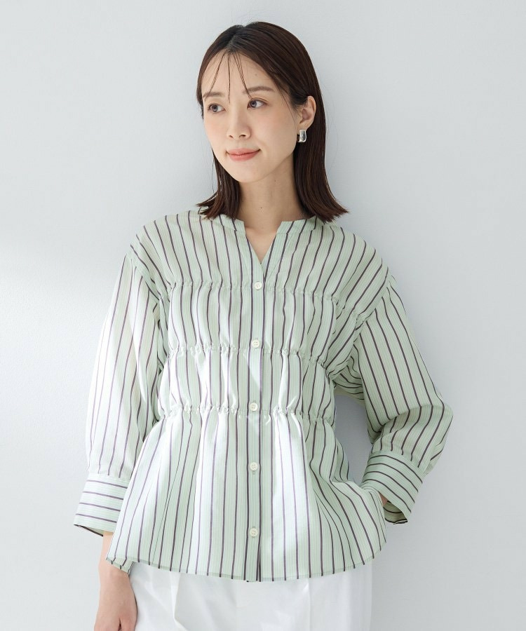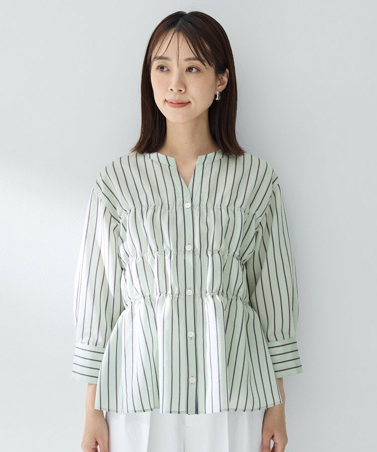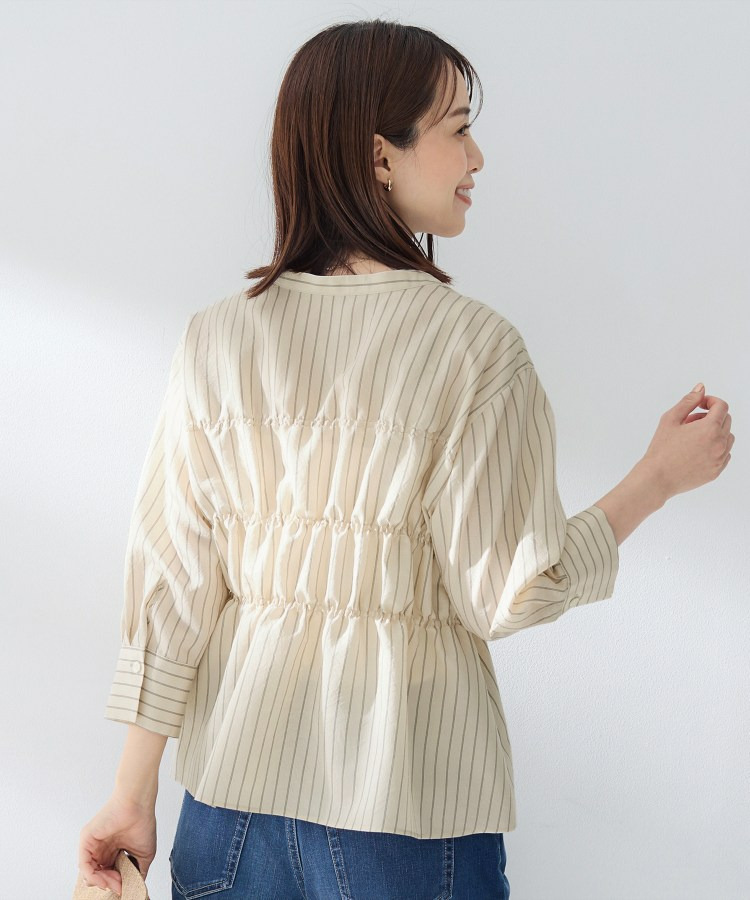 フロントに施されたシャーリングが特徴的なブラウスです。