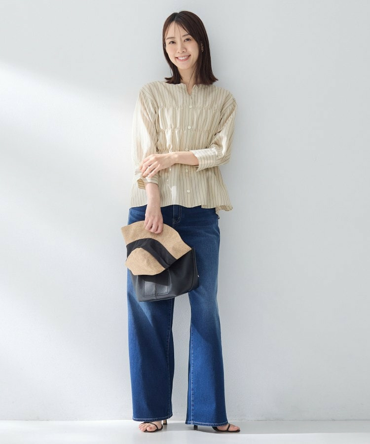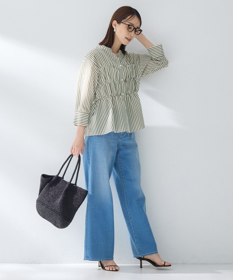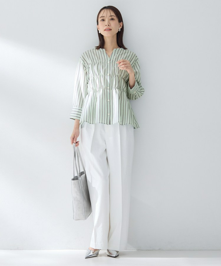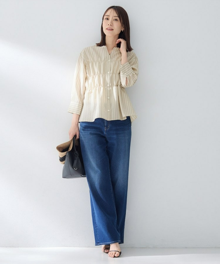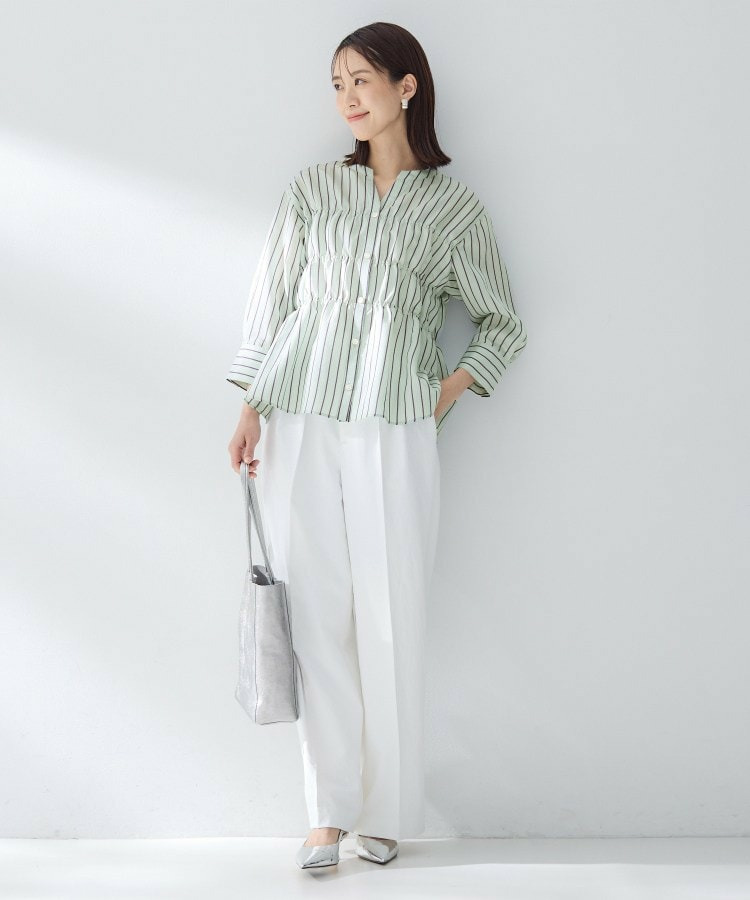 ゆったりとしたシルエットがリラクシーな印象を与えつつ、女性らしさを演出する一着です。