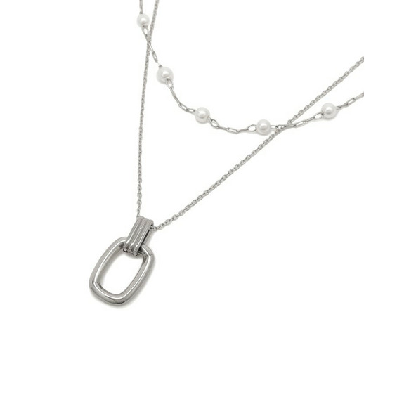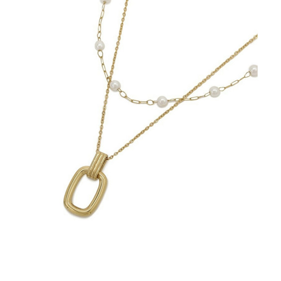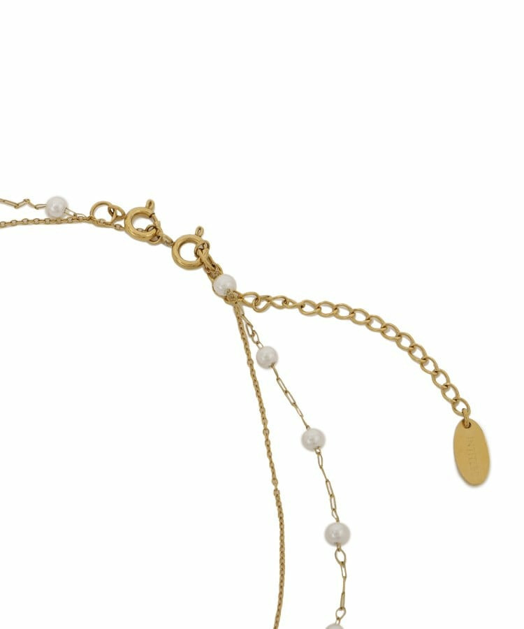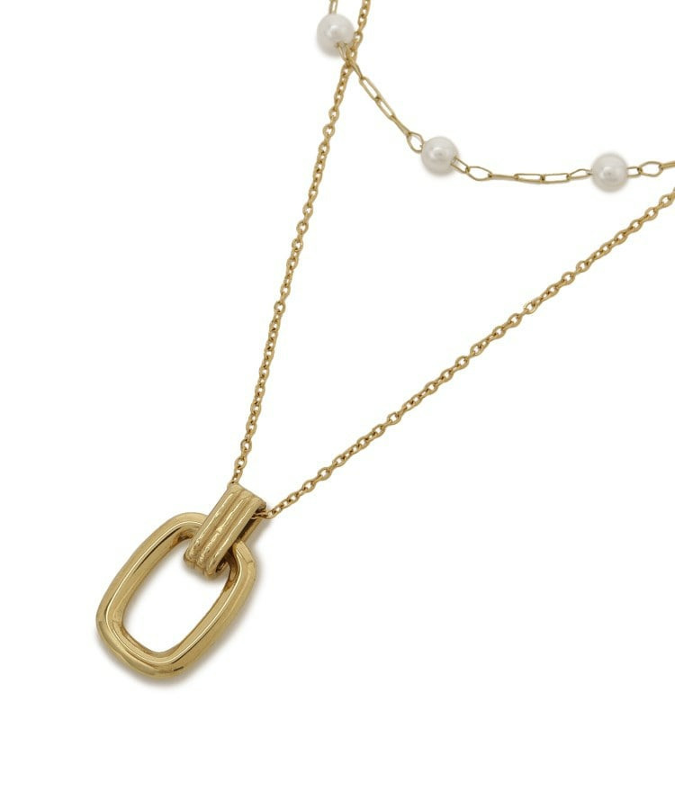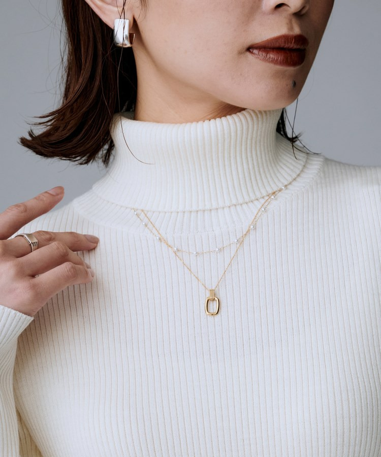 2連のチェーンが織りなす立体感が首元を華やかに演出し、デコルテラインを美しく引き立てます。