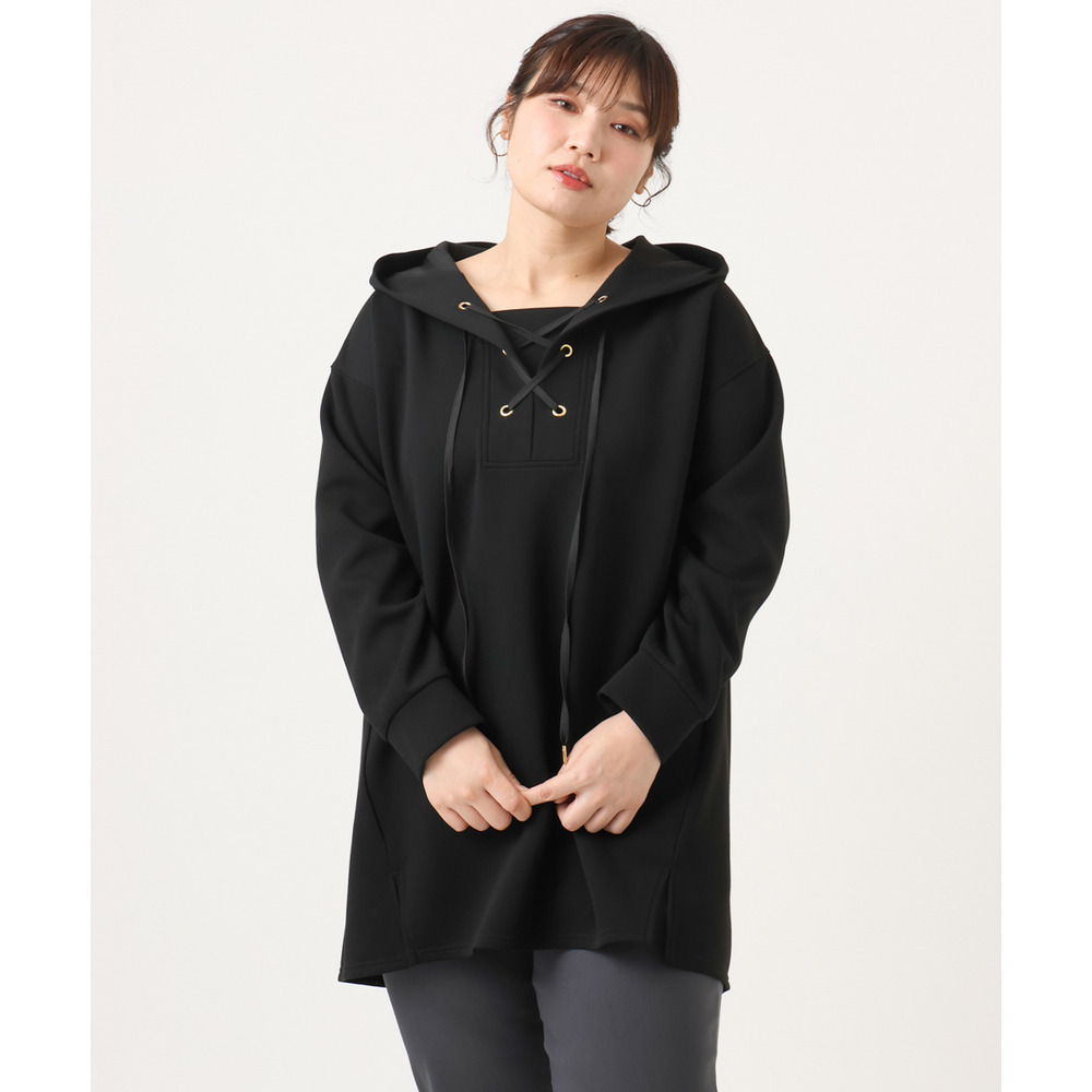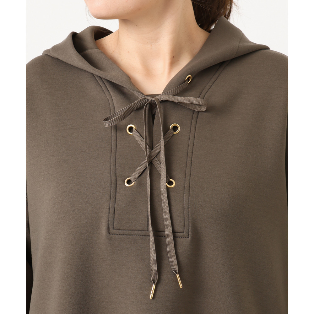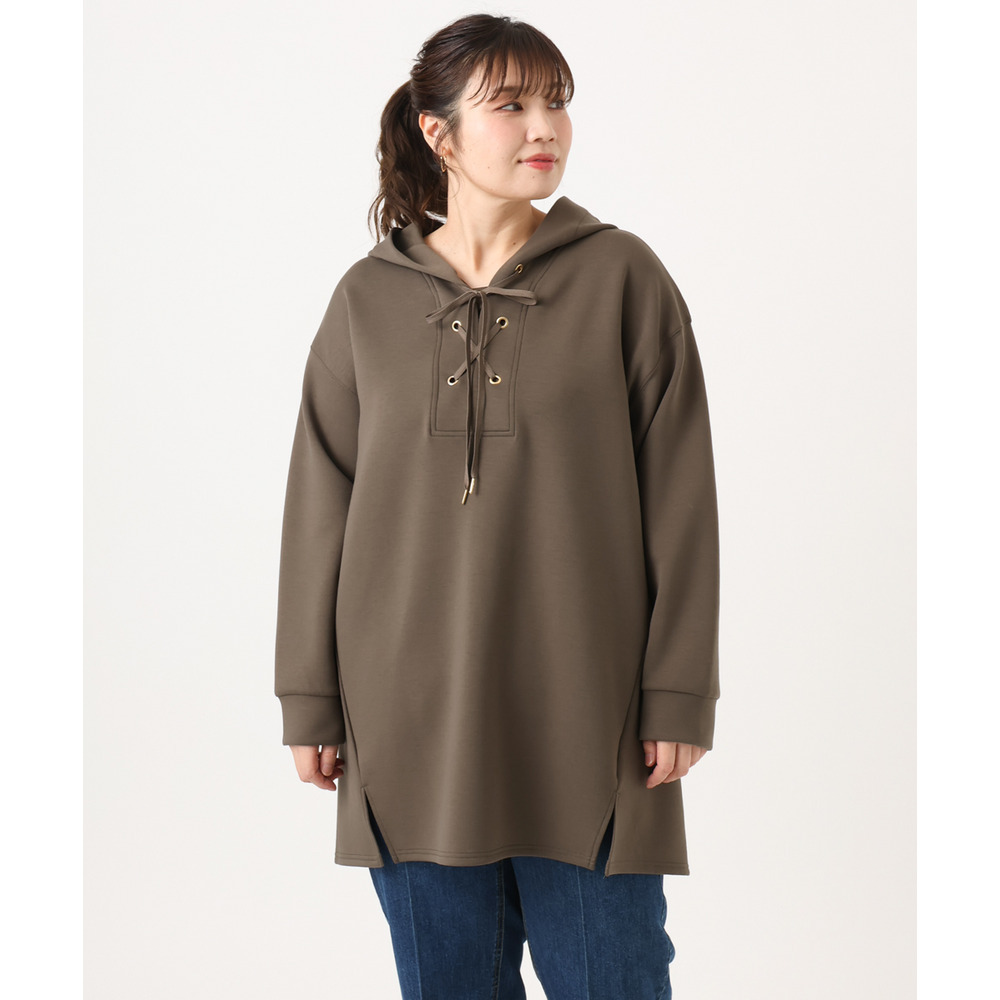 レースアップされたディテールが可愛いフードデザインチュニック。