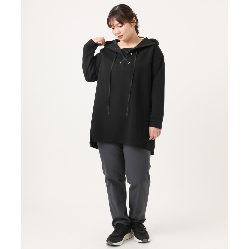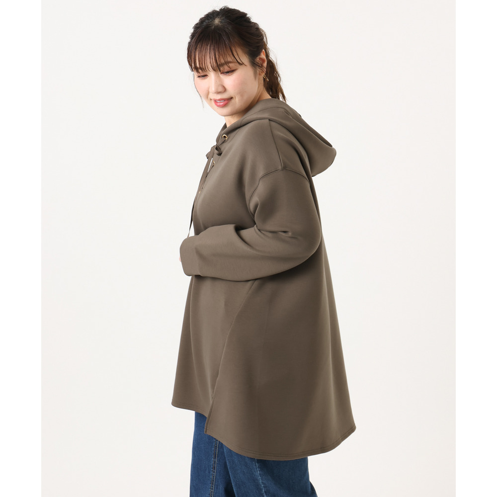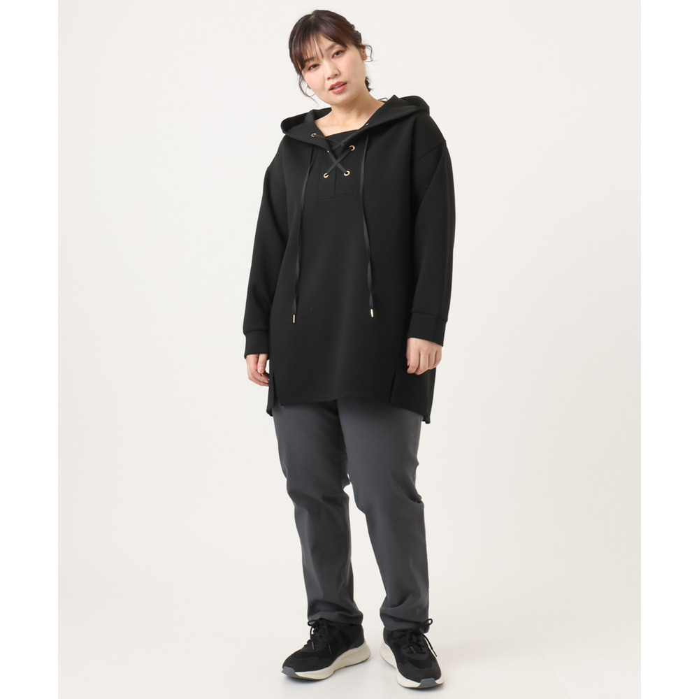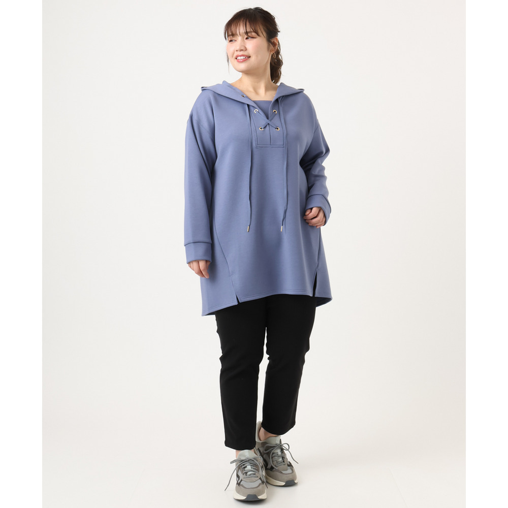 レースアップされたディテールが可愛いフードデザインチュニック。