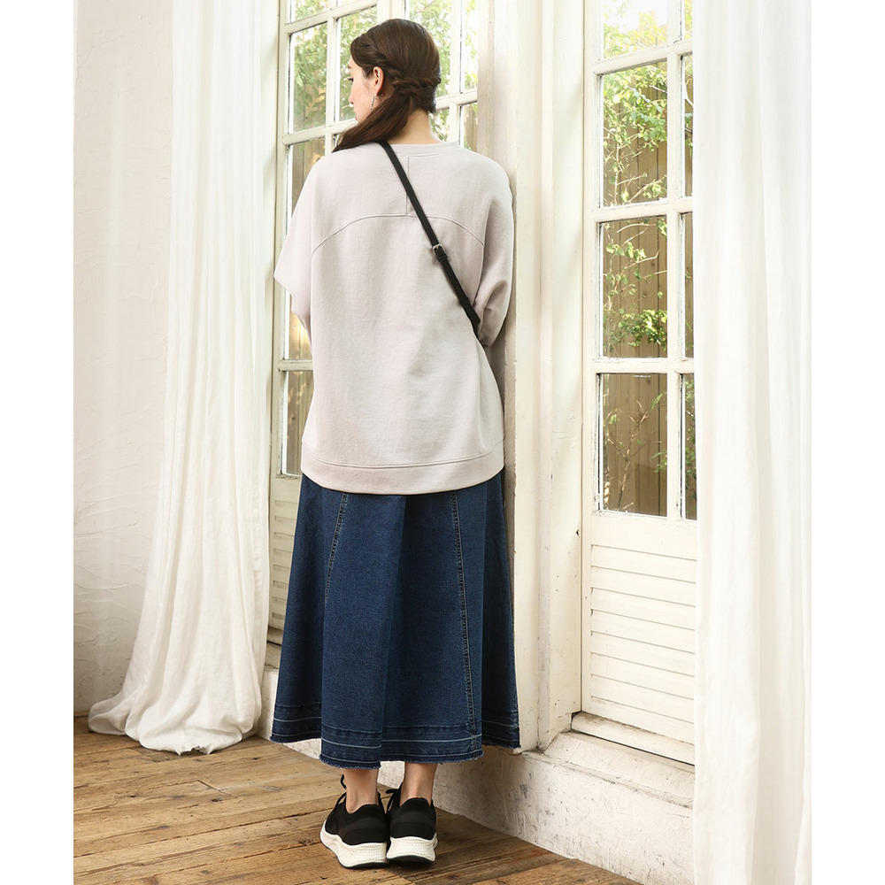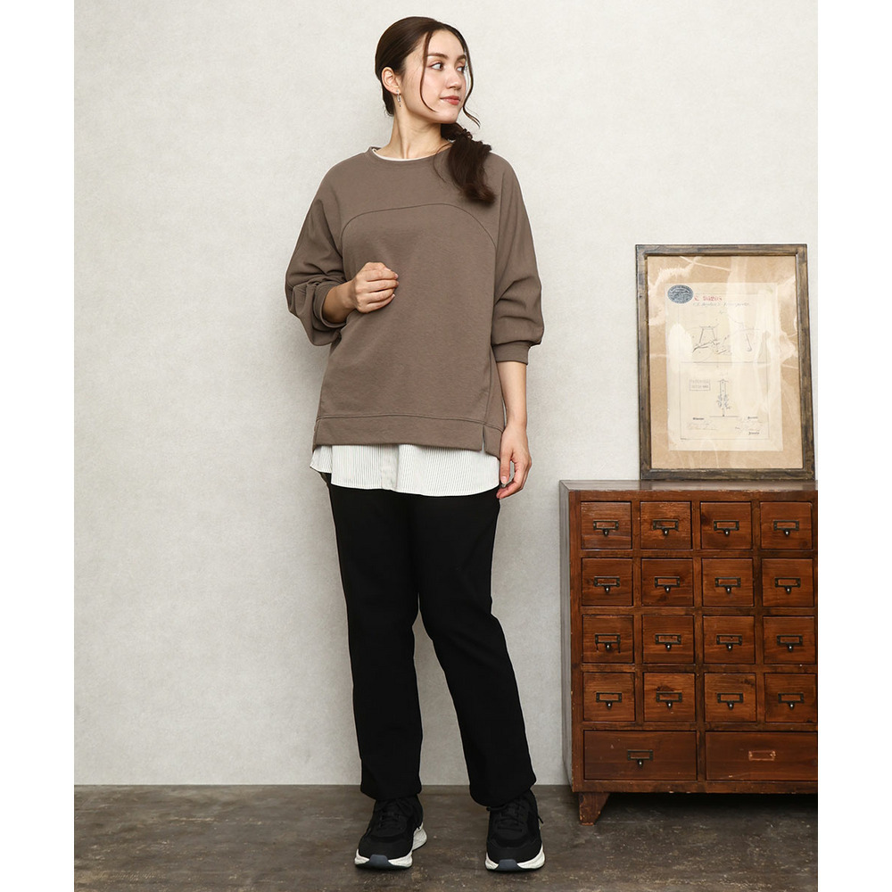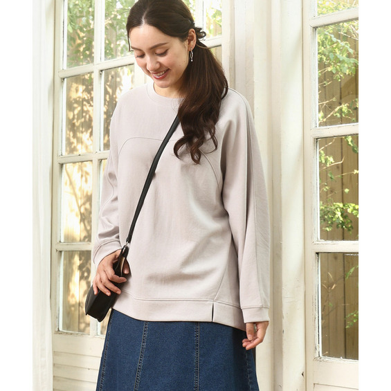 き袖の楽ちんな袖周りのゆったりシルエットですが切り替えや裾のスリットですっきり着られます。