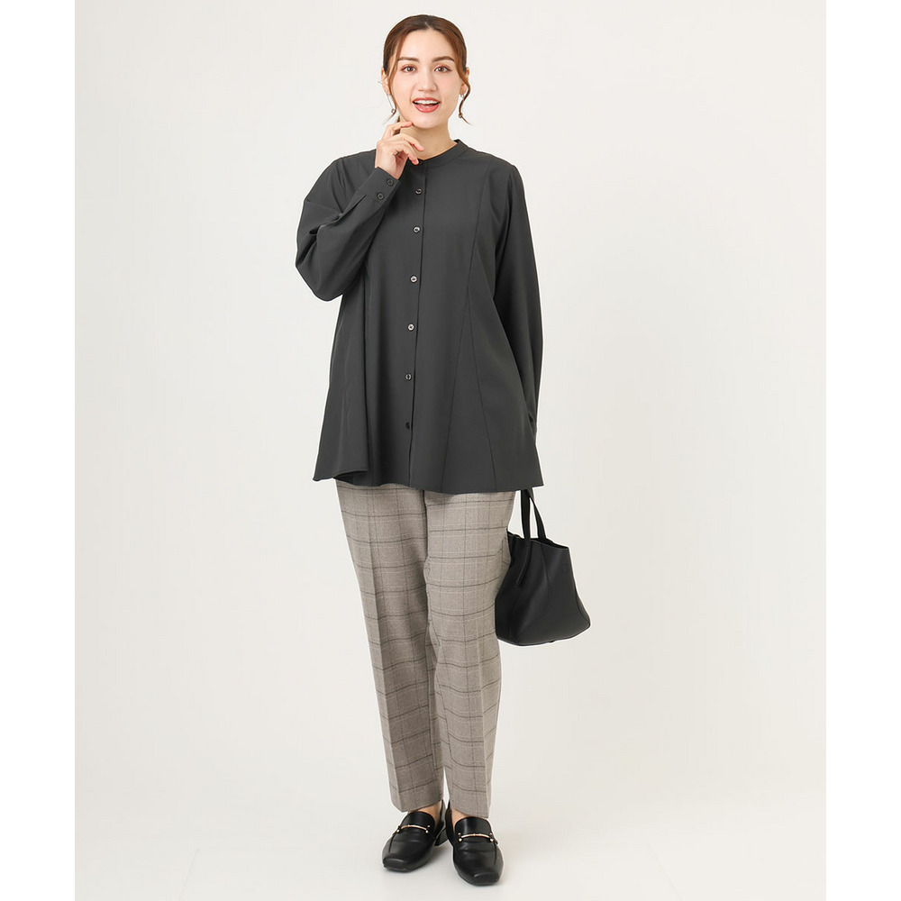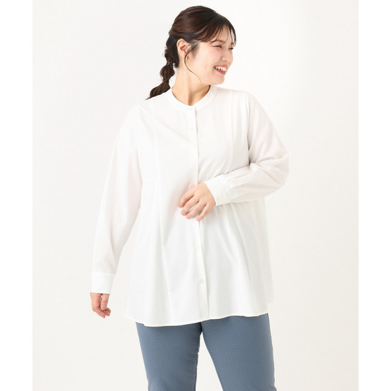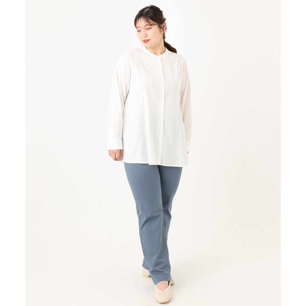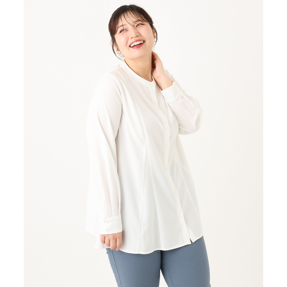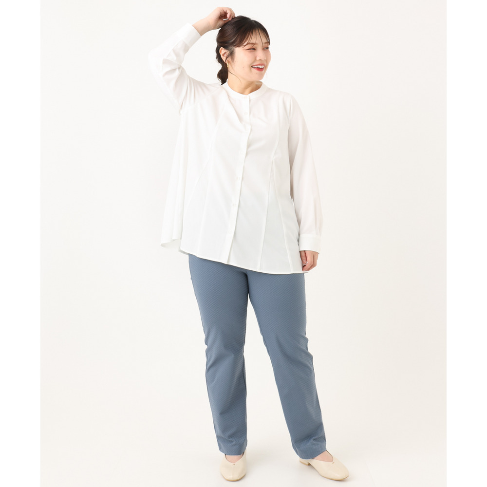 バンドカラーで大人上品な印象を演出。