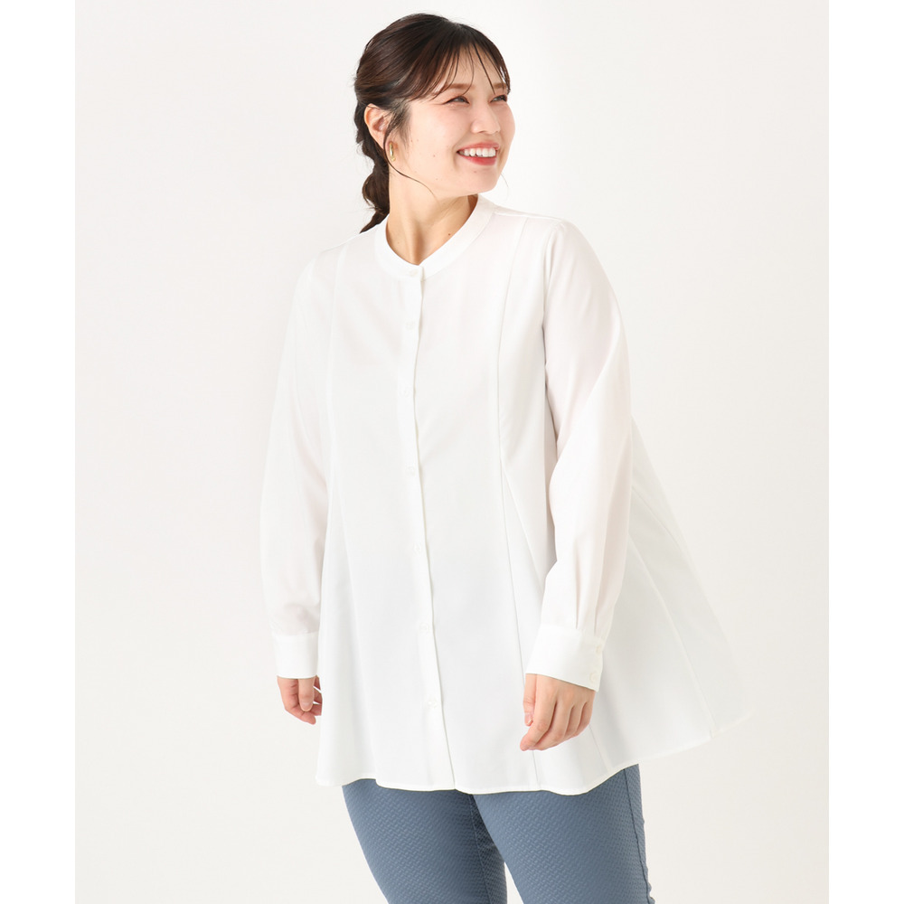 フレアシルエットがきれいな美シルエットブラウス。
