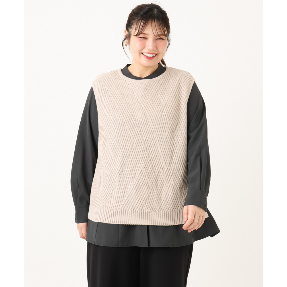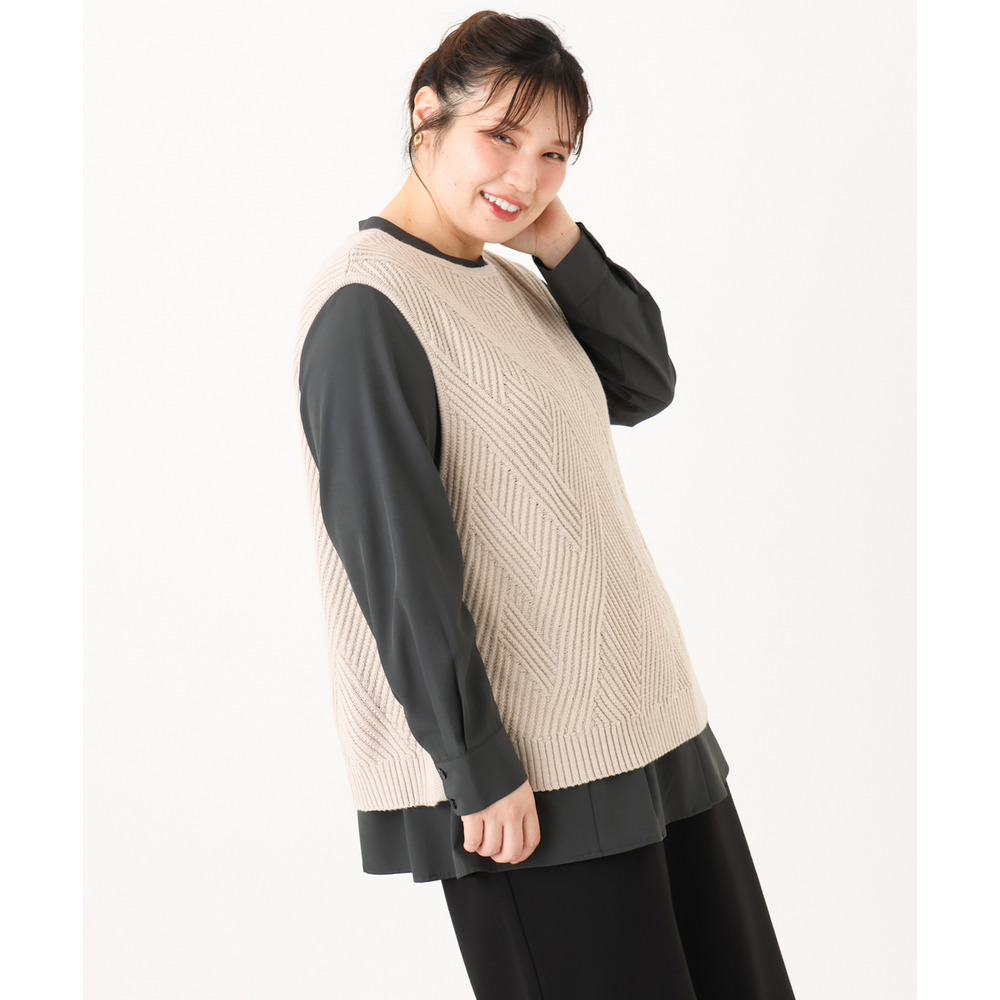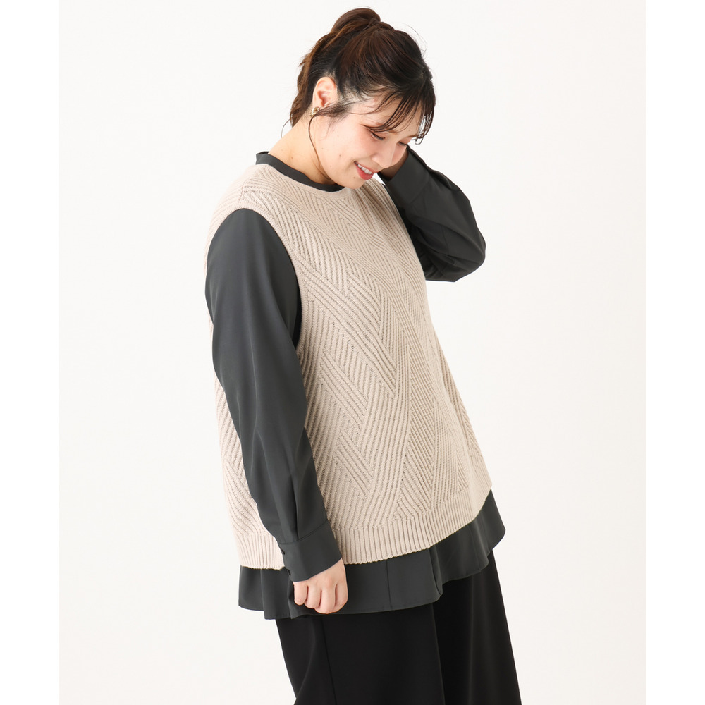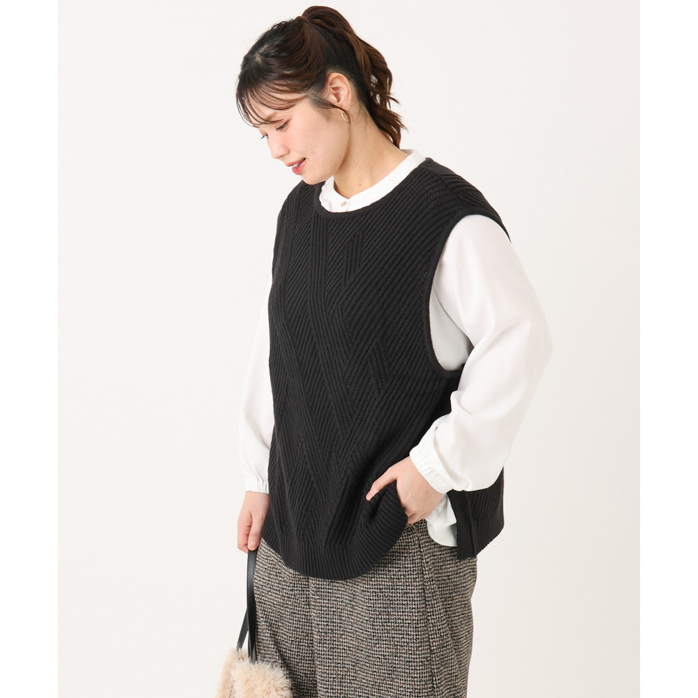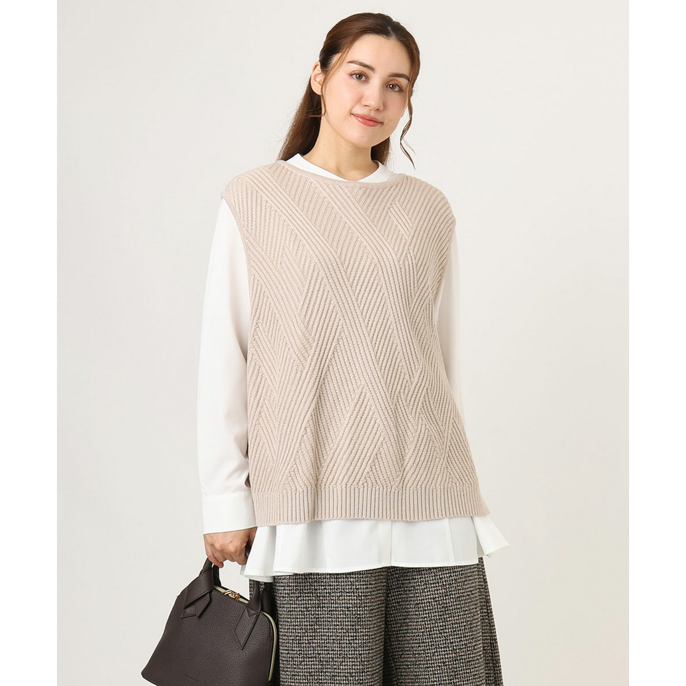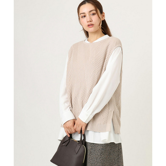 シャツやブラウス、カットソー、ワンピースとレイヤードスタイルが楽しめる一着。